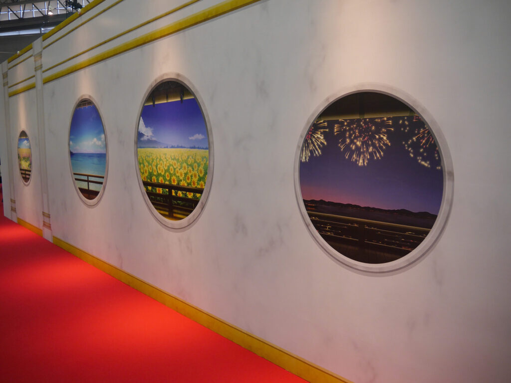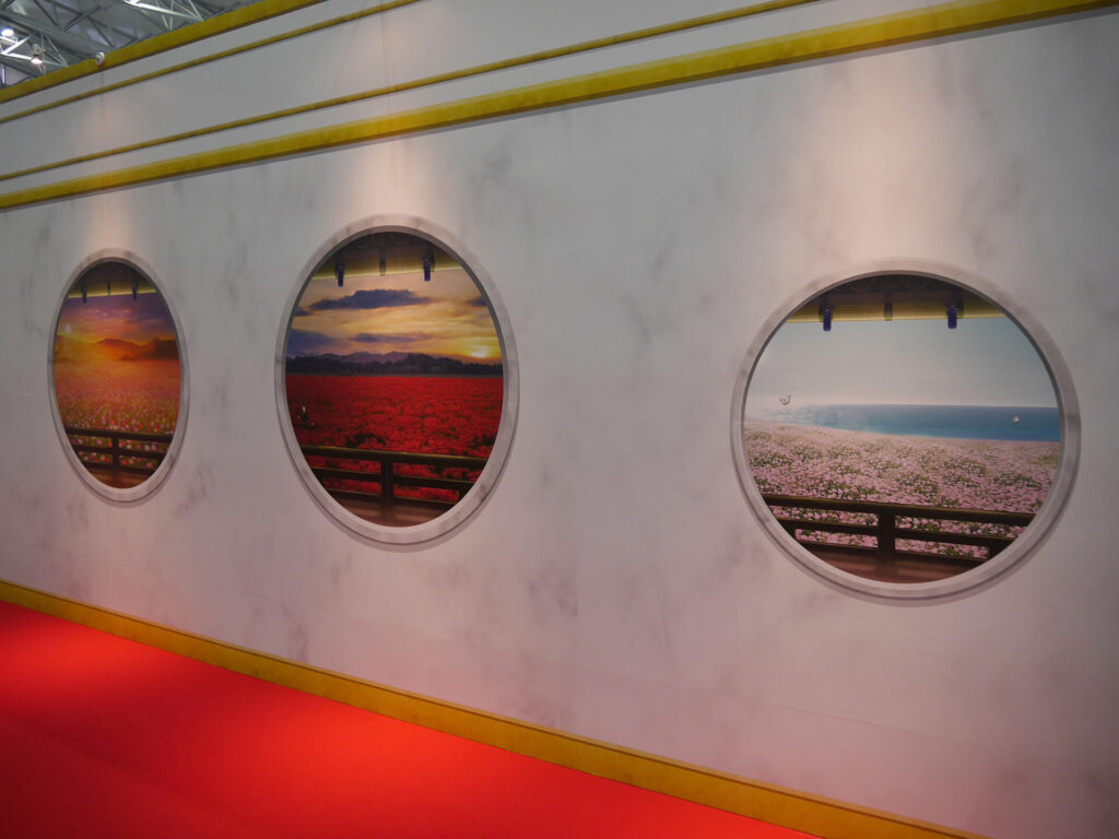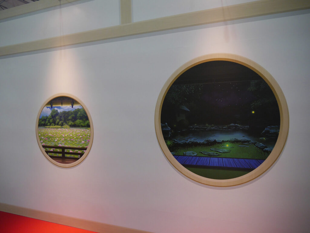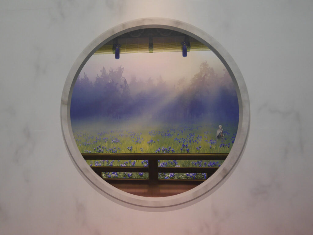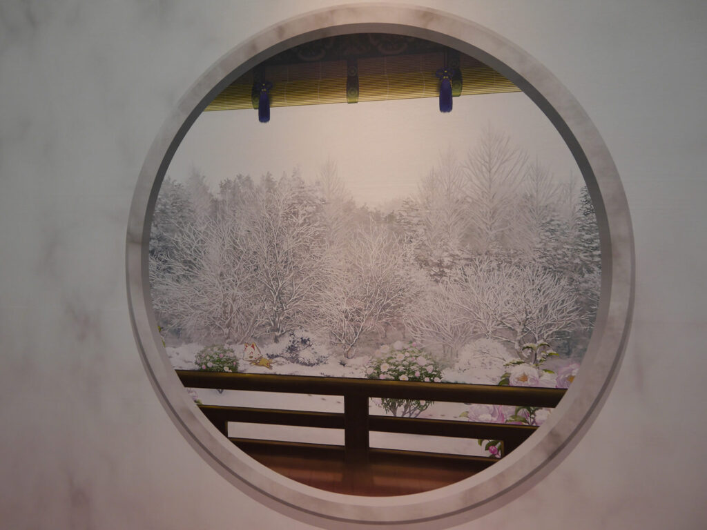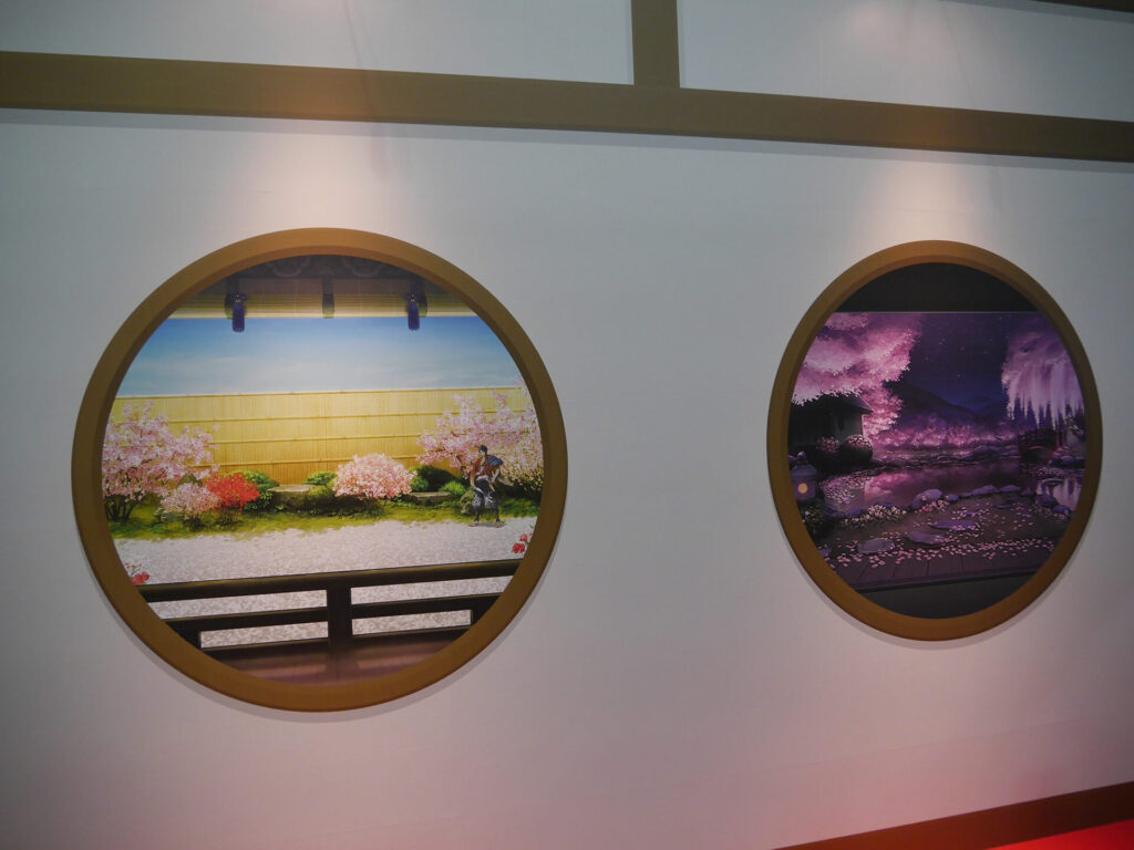三日月宗近に導かれるように入場すると、エントランスは本丸をイメージした展示が。多数の窓にはこっそり刀剣男士の姿もあり、会場内に進みながらもどこにどの刀剣男士がいるのかを、じっくりと眺めていました。