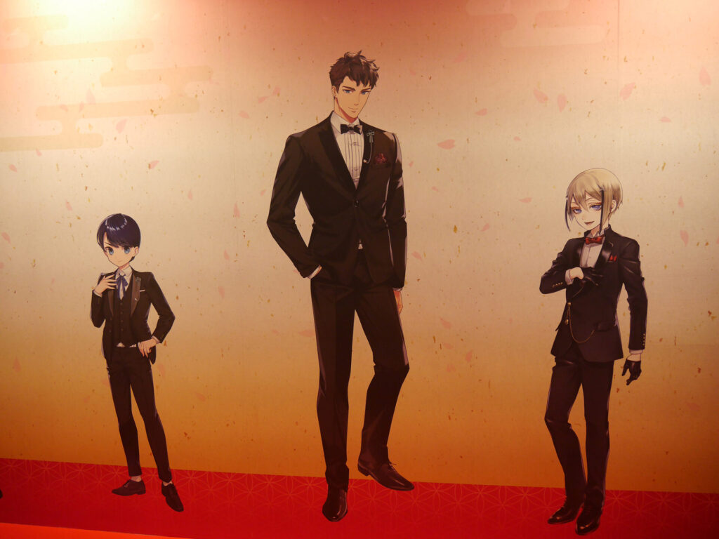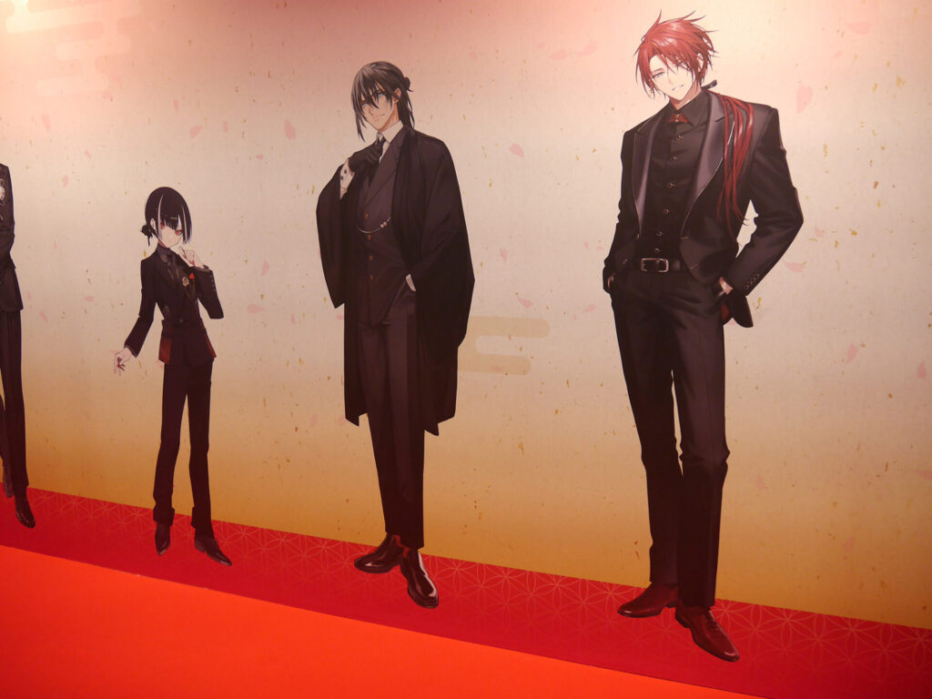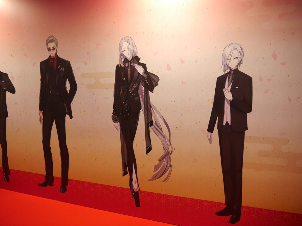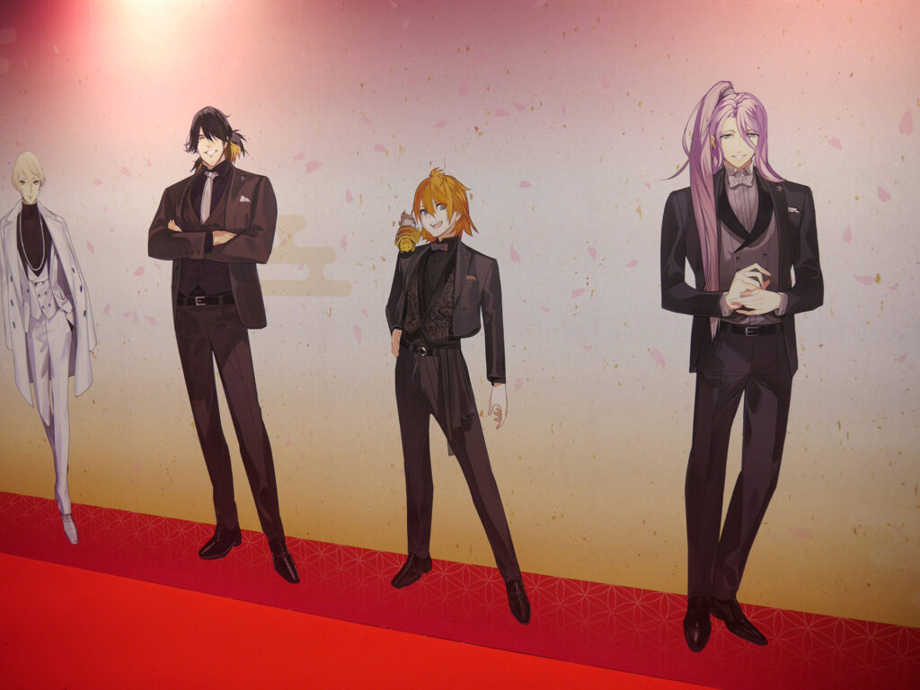 場内はフォトスポット、祝装(十周年記念Ver.)の装いに身を包んだ刀剣男士の壁面展示、『刀剣乱舞』の10年間の軌跡がまとめられた「刀剣乱舞クロニクル」、祝装(十周年記念Ver.)の刀剣男士1振りと記念撮影をすることができる「大本丸博 記念撮影館」、本イベントのオリジナルメニューを食べることができるアニメイトキッチンカー、太刀「復元 三日月宗近 真」を始め、三日月宗近と始まりの五振りにゆかりのある真剣が展示された「刀剣展示」、ミュージカル・舞台・アニメ・映画・コミカライズ・歌舞伎などさまざまなメディアミックスを振り返ることができる「とある本丸ブース」、そしてグッズの展示&販売が行われていた「スポンサーブース」と見どころ満載のエリアがありました。