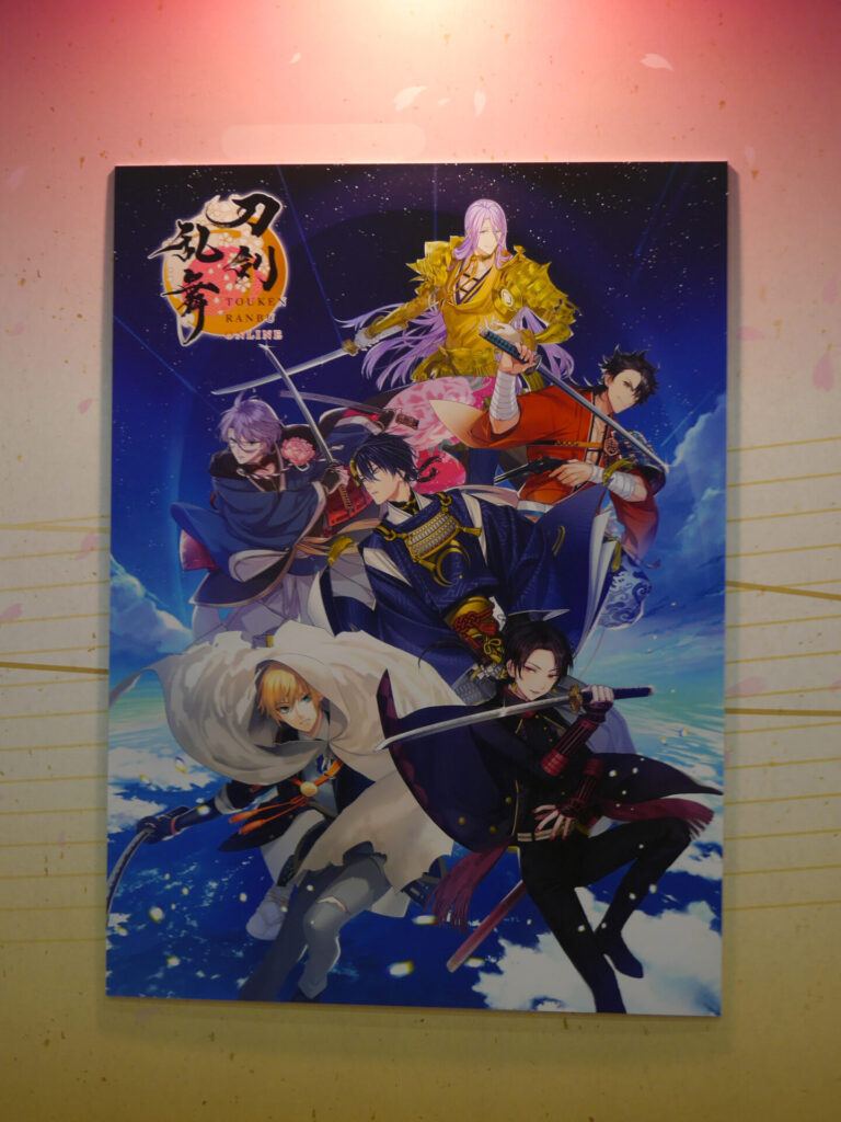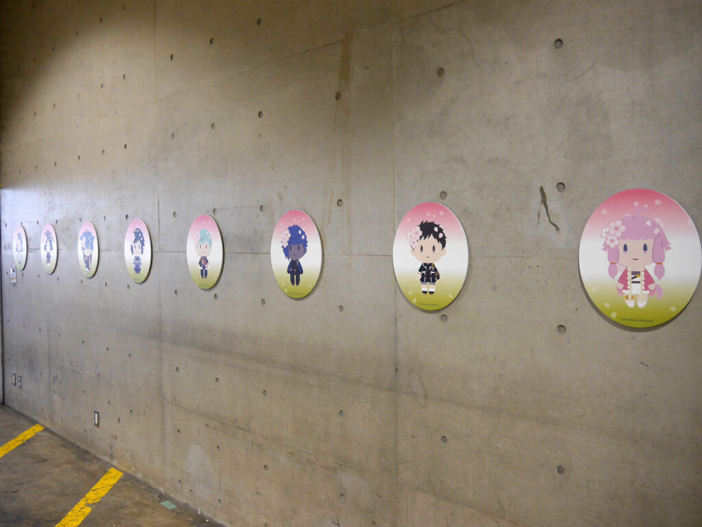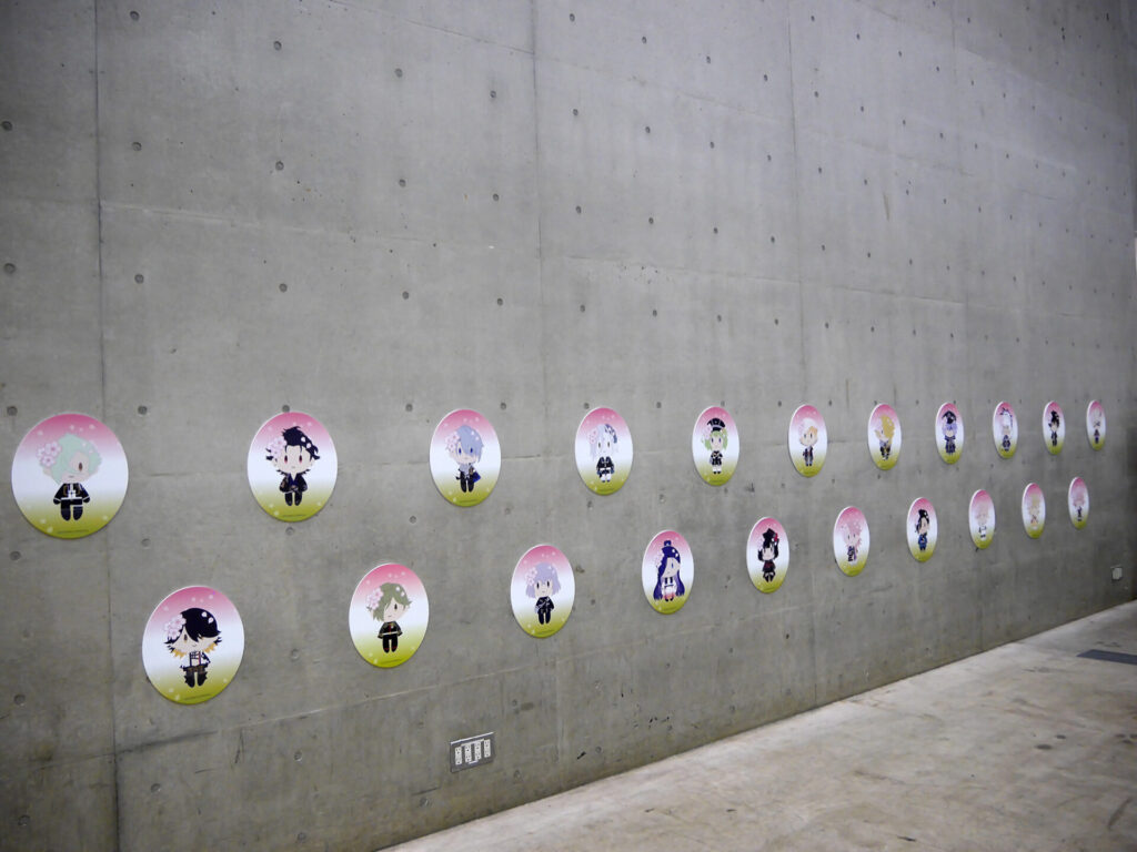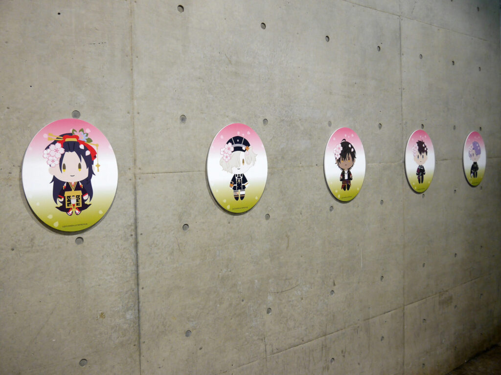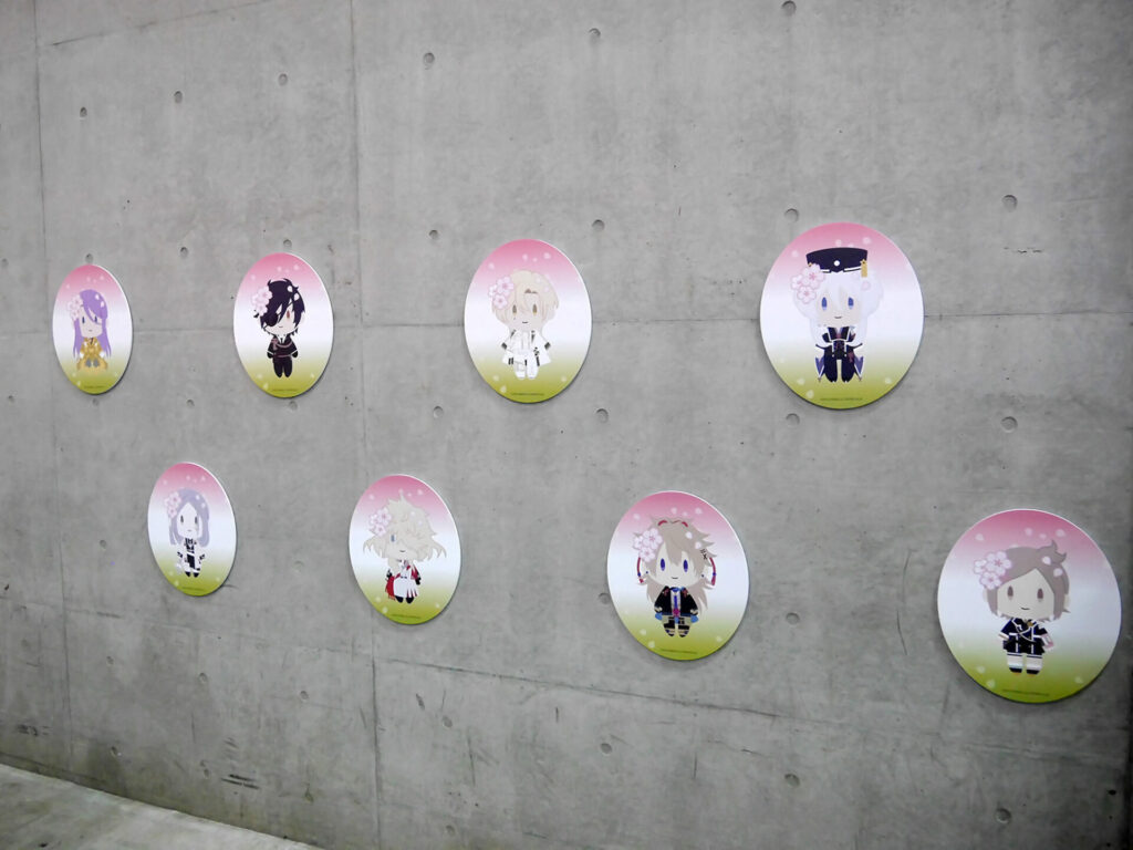 エリア内が大賑わいのなか、ふと通路の壁に目をやると愛らしい刀剣男士が。パステルでキュートな刀剣男士が魅力の「御供散歩 さくら装備」も掲示されていました。