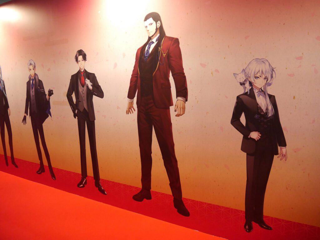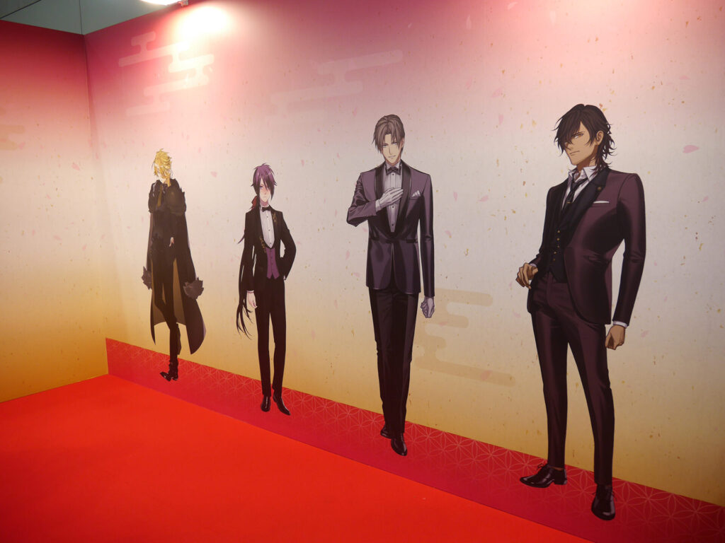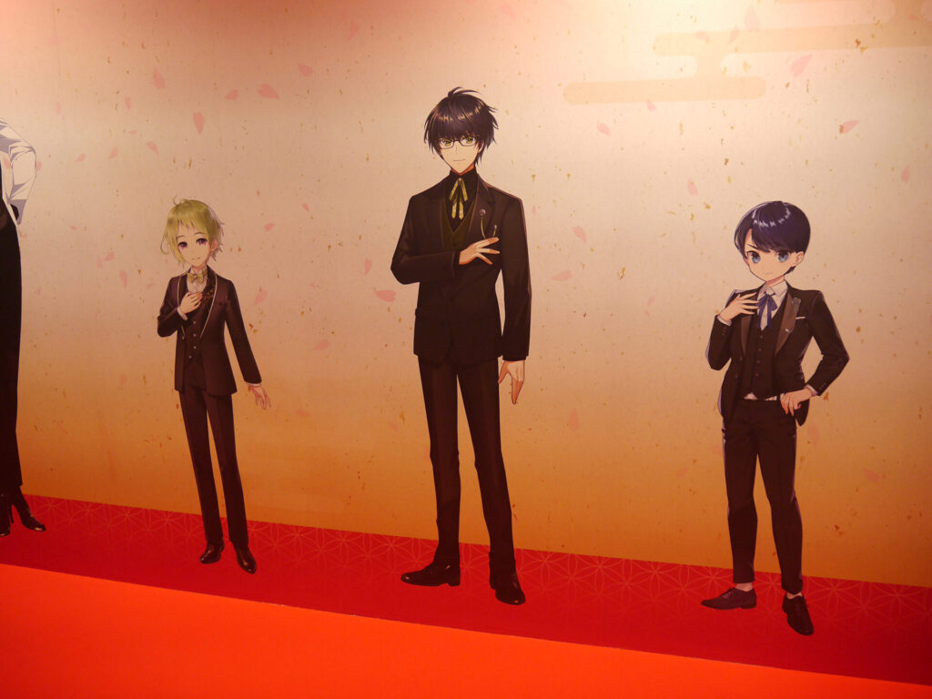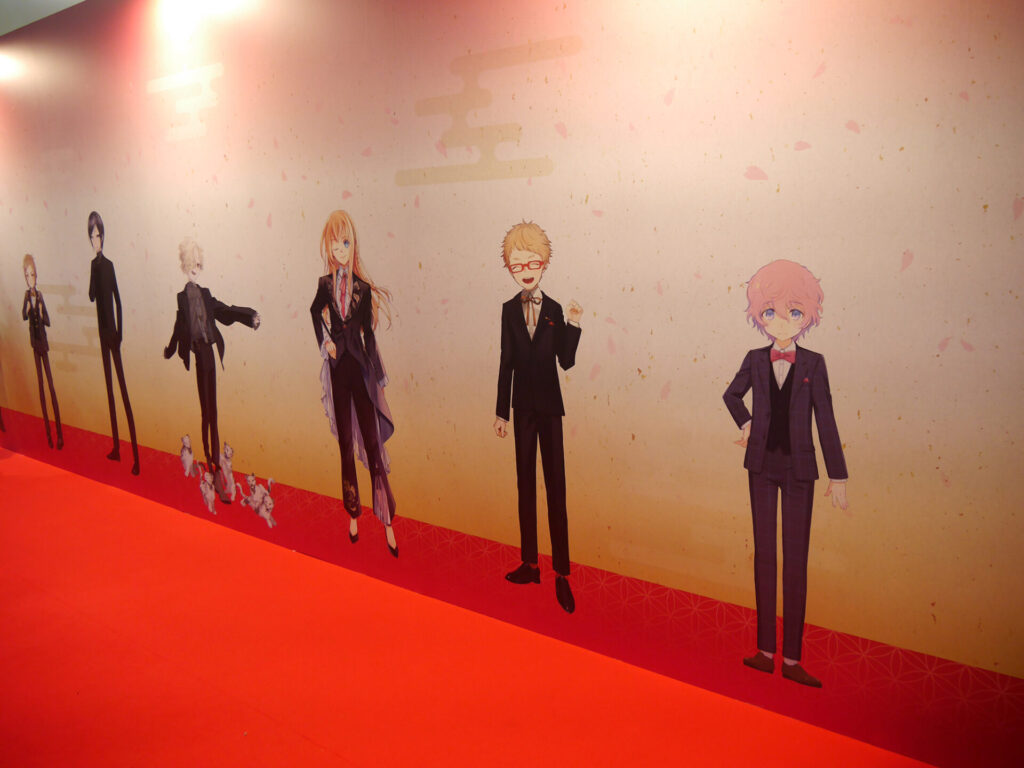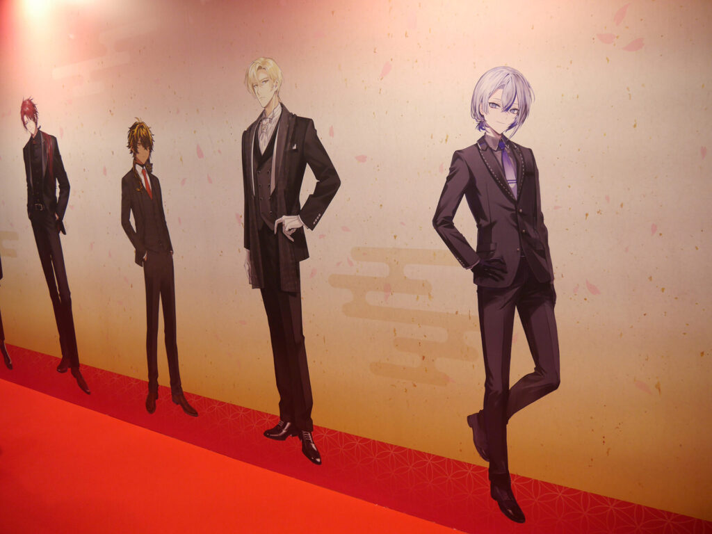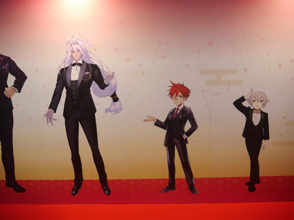 エリア内が大賑わいのなか、ふと通路の壁に目をやると愛らしい刀剣男士が。パステルでキュートな刀剣男士が魅力の「御供散歩 さくら装備」も掲示されていました。