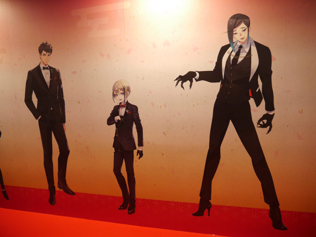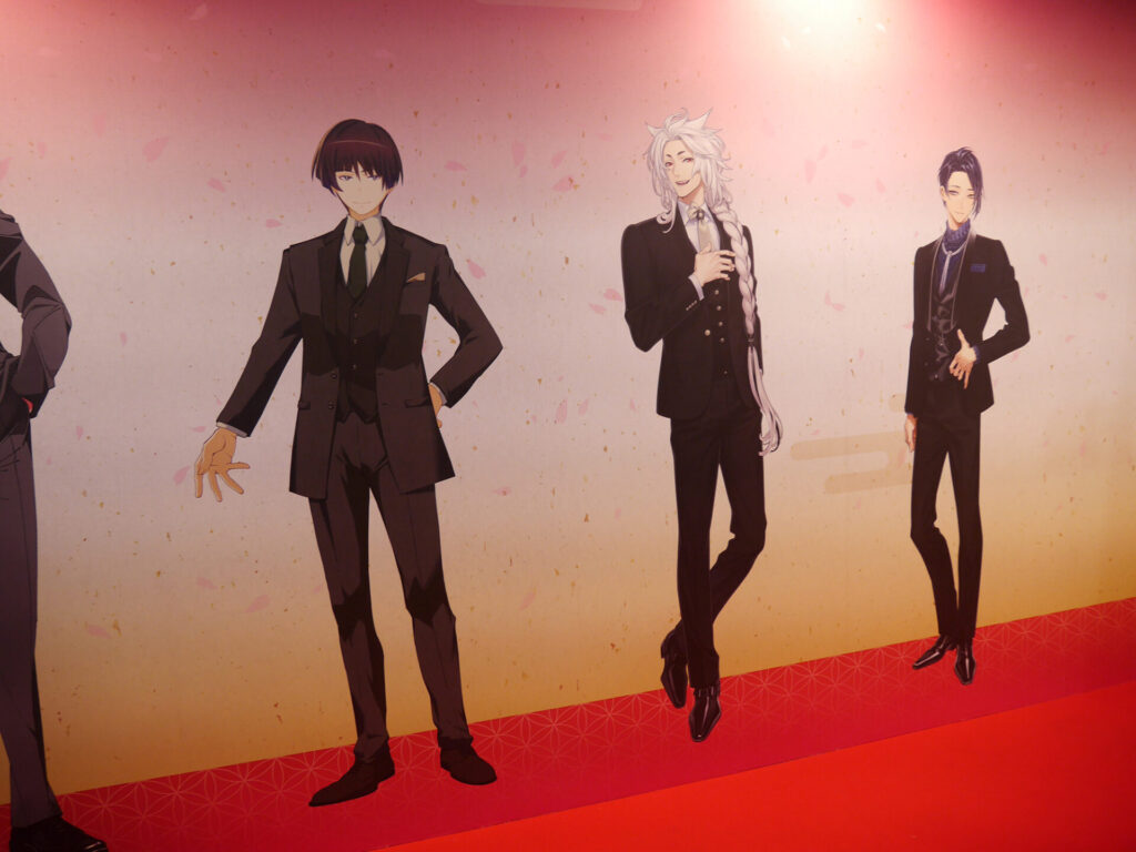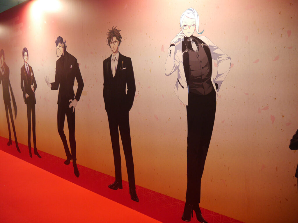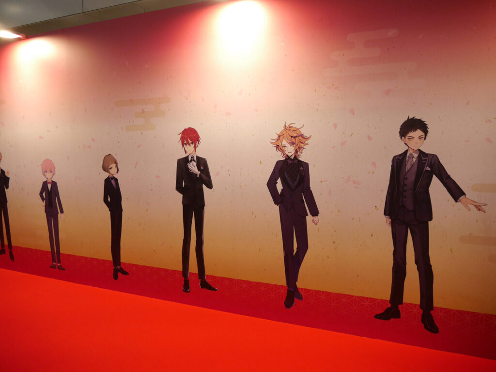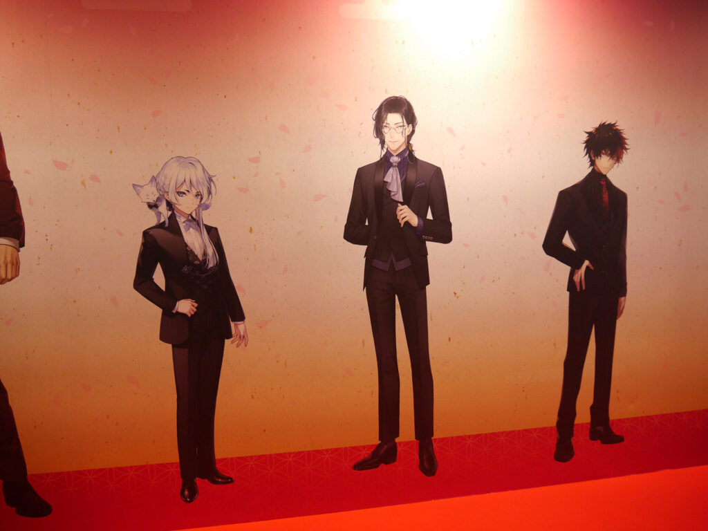 エリア内が大賑わいのなか、ふと通路の壁に目をやると愛らしい刀剣男士が。パステルでキュートな刀剣男士が魅力の「御供散歩 さくら装備」も掲示されていました。