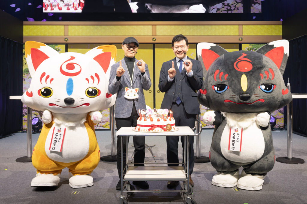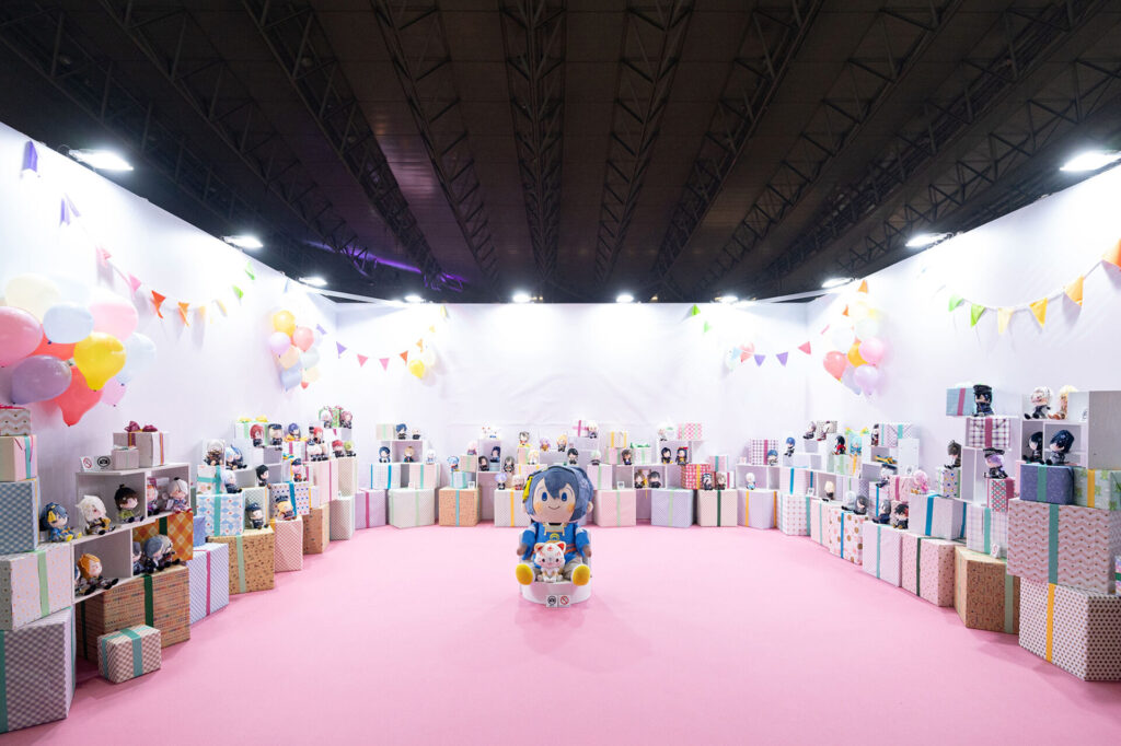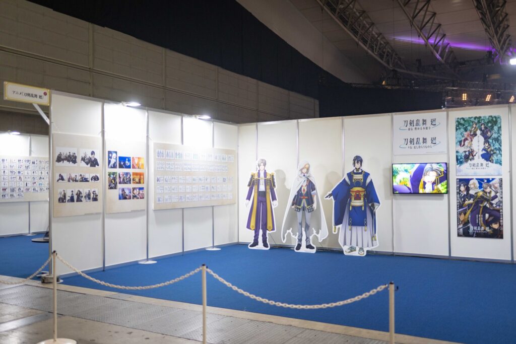 『わんぱく!刀剣乱舞』のブースでは、可愛いぬいぐるみとともにお祝い感満載の展示が。そして「アニメ2026年放送予定!」の大きな文字も。