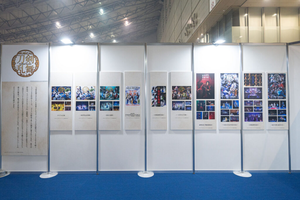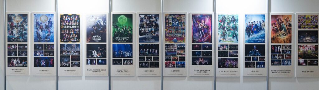舞台同様、ミュージカルのブースでもその歴史を振り返ることができる展示が。歴代公演のキービジュアルなど、色鮮やかで目を惹きます。