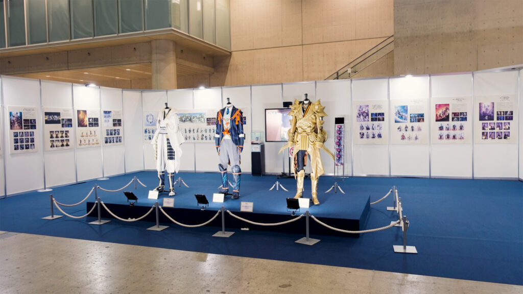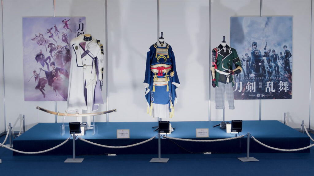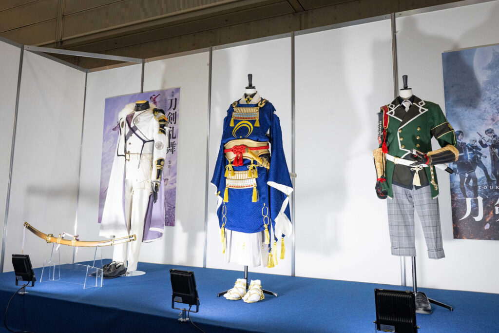 また舞台で使用された衣裳の展示も行われ、正面からだけではなく後ろも見ることが出来るとあって、写真を撮る多くの審神者の姿が見られました。