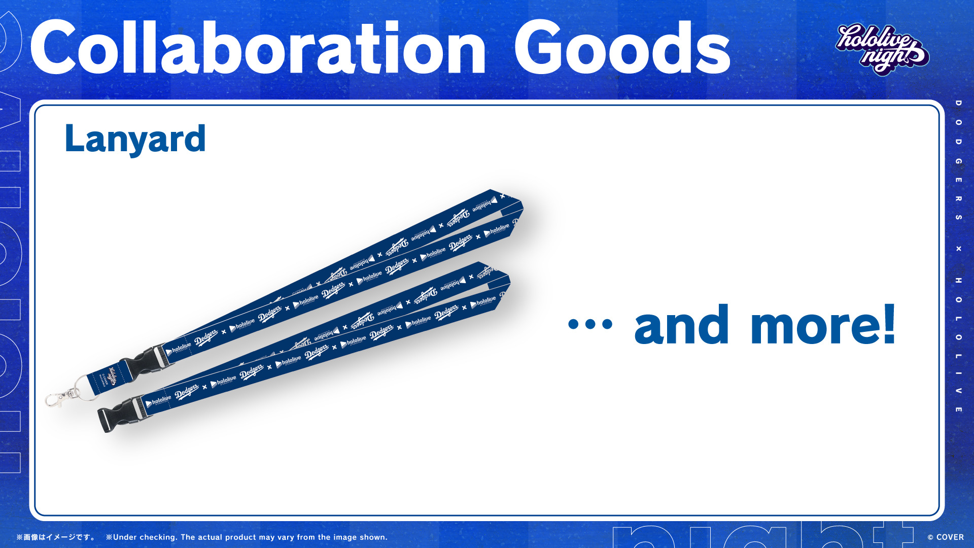 また、ドジャースタジアムでの等身大パネル展示、球場内の各ショップでのコラボグッズの販売、「hololive night」チケット購入者への「アメリカンベースボール風トレーディングカード」(ランダムでコラボ対象タレントの複製サイン入り)の特典付与など、野球観戦が盛り上がる多くの企画が実施予定。