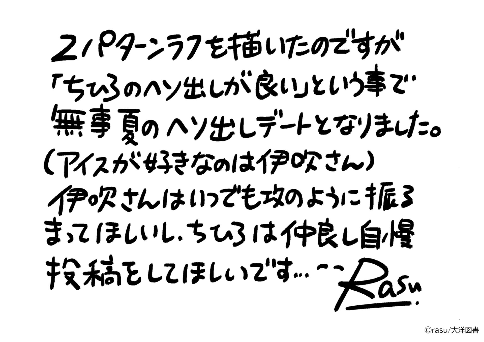 本記事では、rasu先生が手掛ける『アフターアクト』(H&C Comics iHertZ Series/大洋図書 刊)のグッズラインナップや、先生からの直筆コメントをご紹介します。