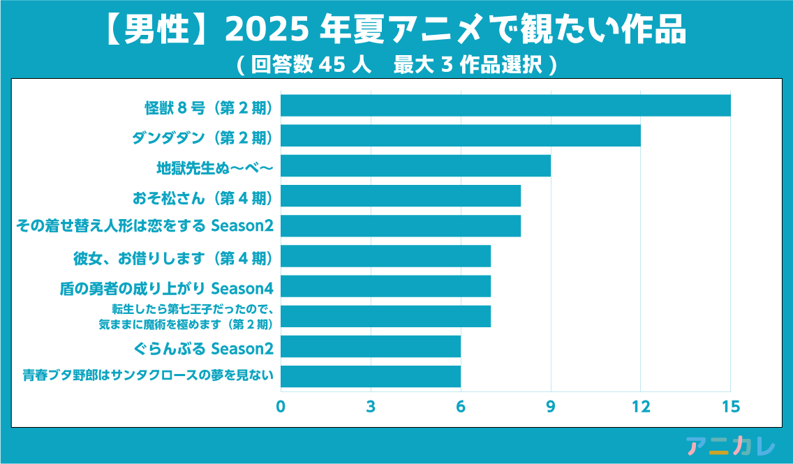 ■調査方法:インターネット調査、2025年夏アニメより観たい作品を1人最大3作品選択