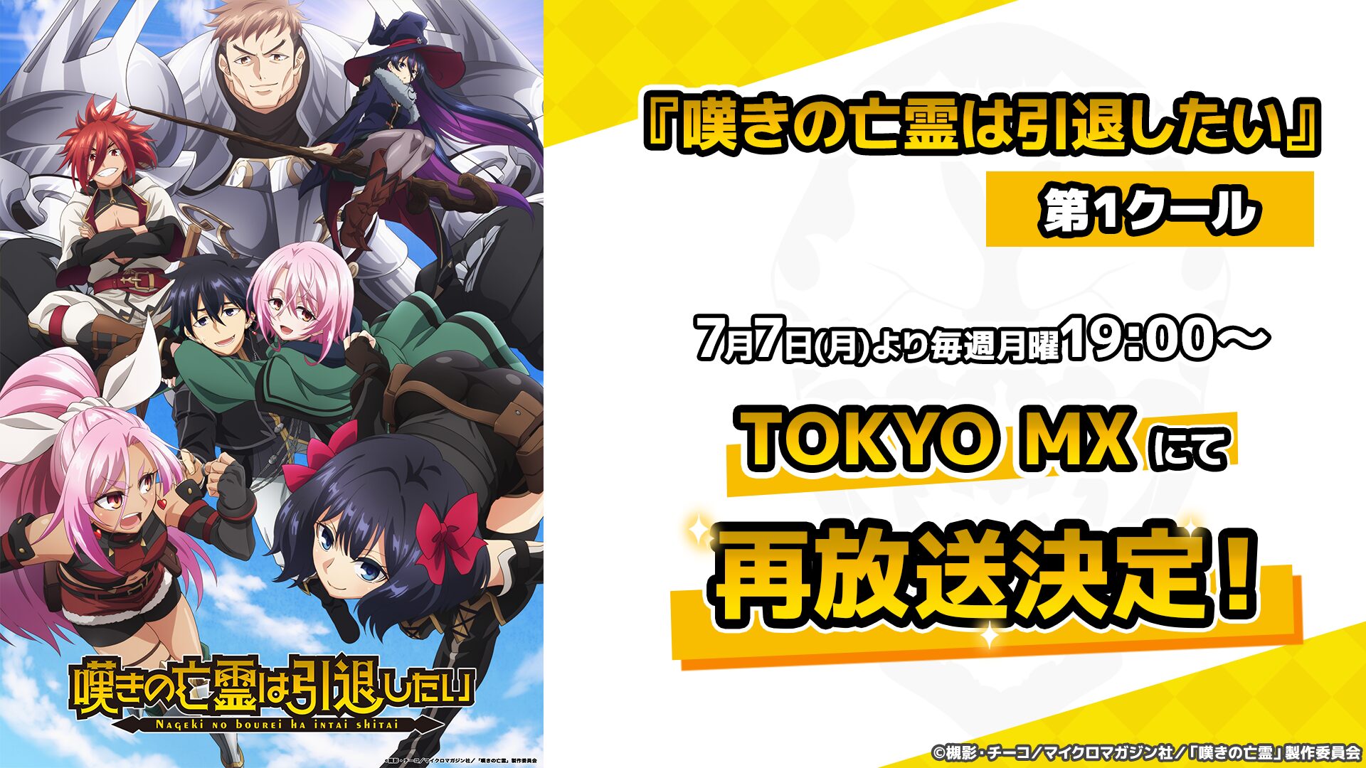 TOKYO MXで2025年7月7日(月)より毎週月曜19:00〜、TVアニメ『嘆きの亡霊は引退したい』第1クールが再放送されることも明らかに。