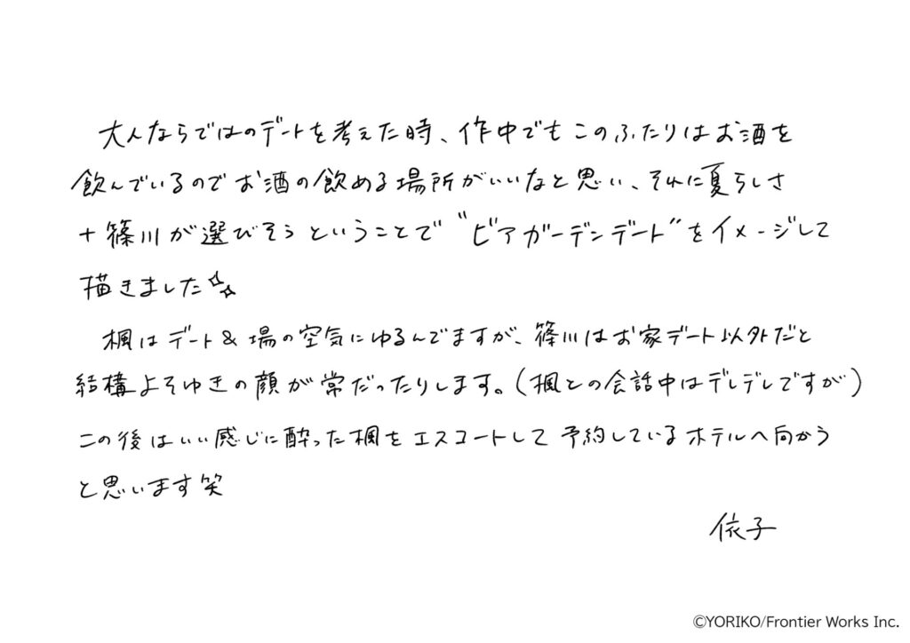 本記事では、依子先生が手掛ける『初恋には敵わない!』(ダリアコミックス/フロンティアワークス 刊)のグッズラインナップや、先生からの直筆コメントをご紹介します。