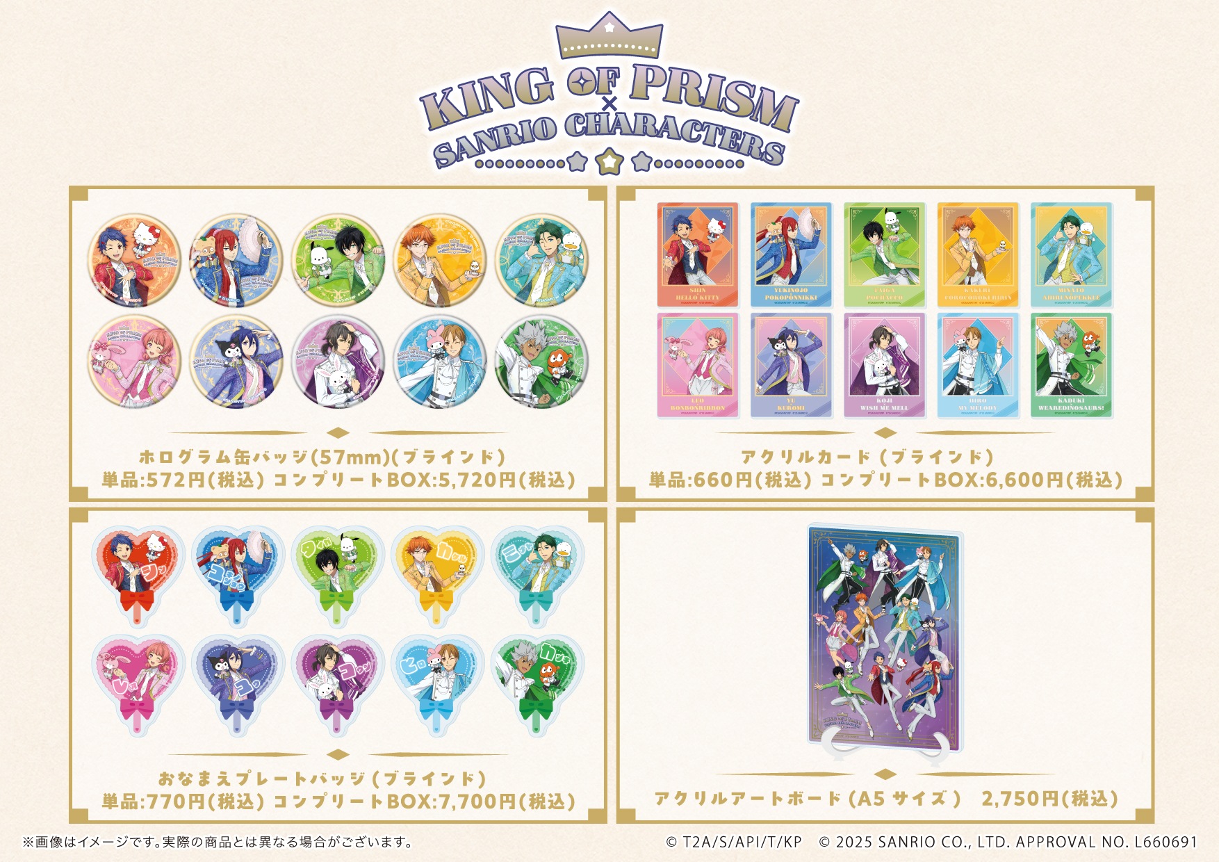 新規コラボイラストを使用した「KING OF PRISM-Your Endless Call-×サンリオキャラクターズ」の新作グッズが登場! 2025年7月4日(金)よりサンリオアニメストア池袋P’PARCO店にて販売されます(同日より通販も開始)。