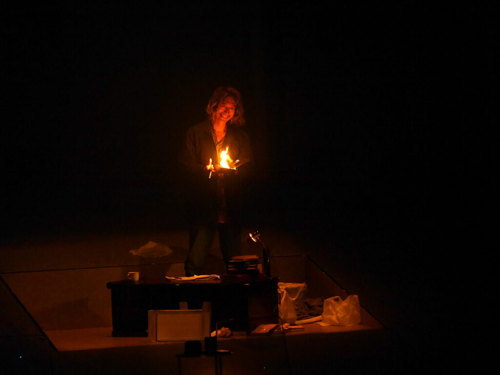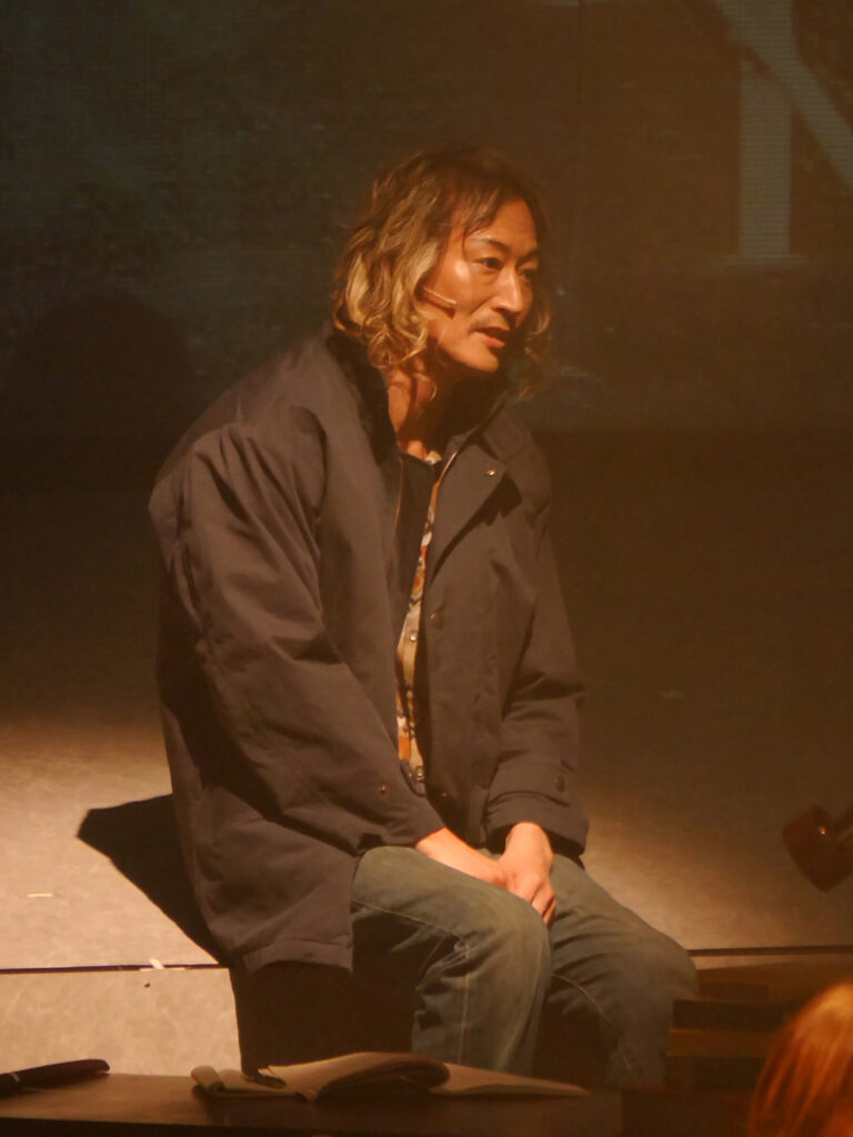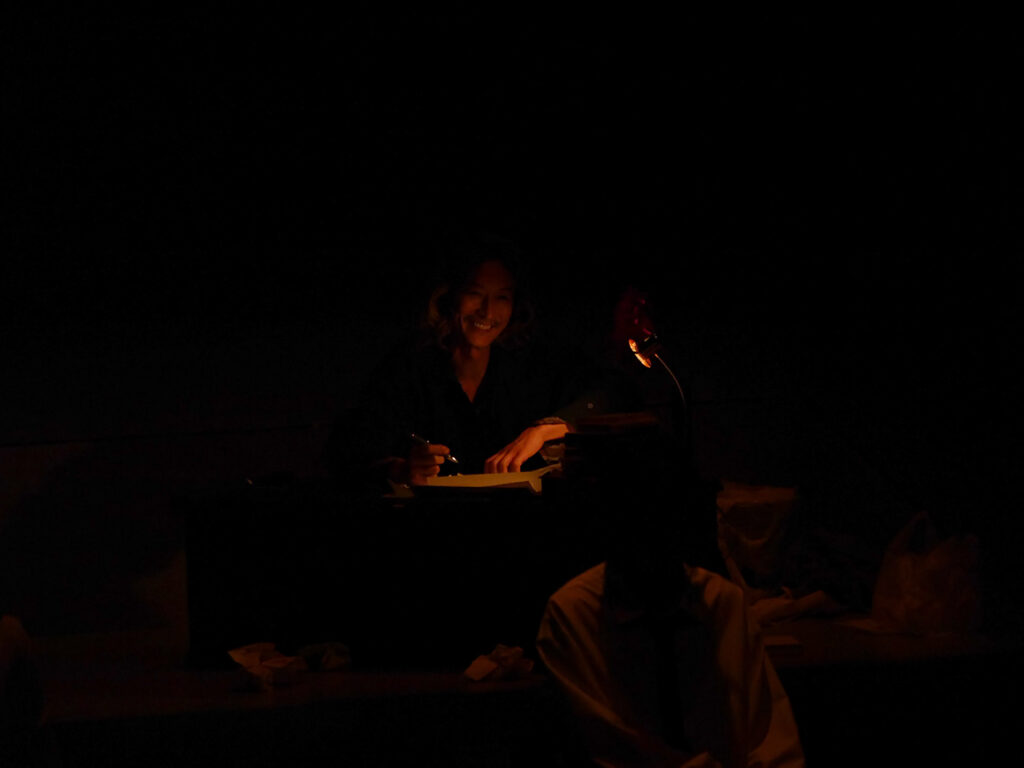 暗闇のなか、静寂を切り裂くかのように水音が響き渡り、“深淵”を表しているかのような空間にいる似非森(演:萩野崇さん)のモノローグから「物語」は始まりました。