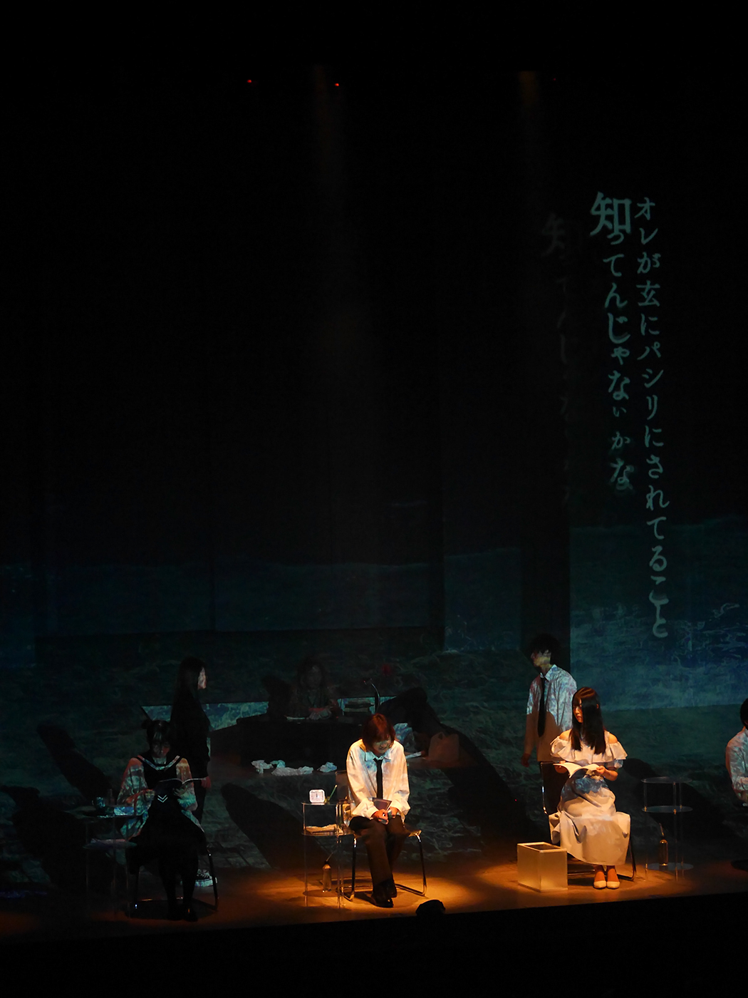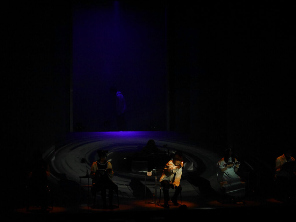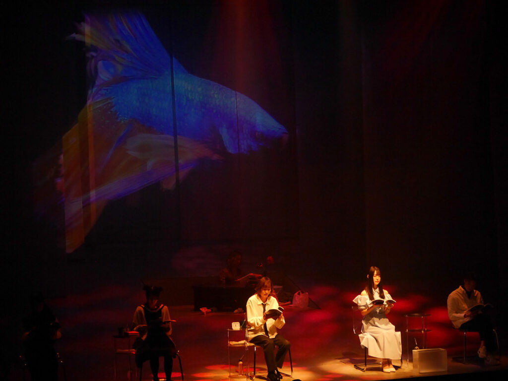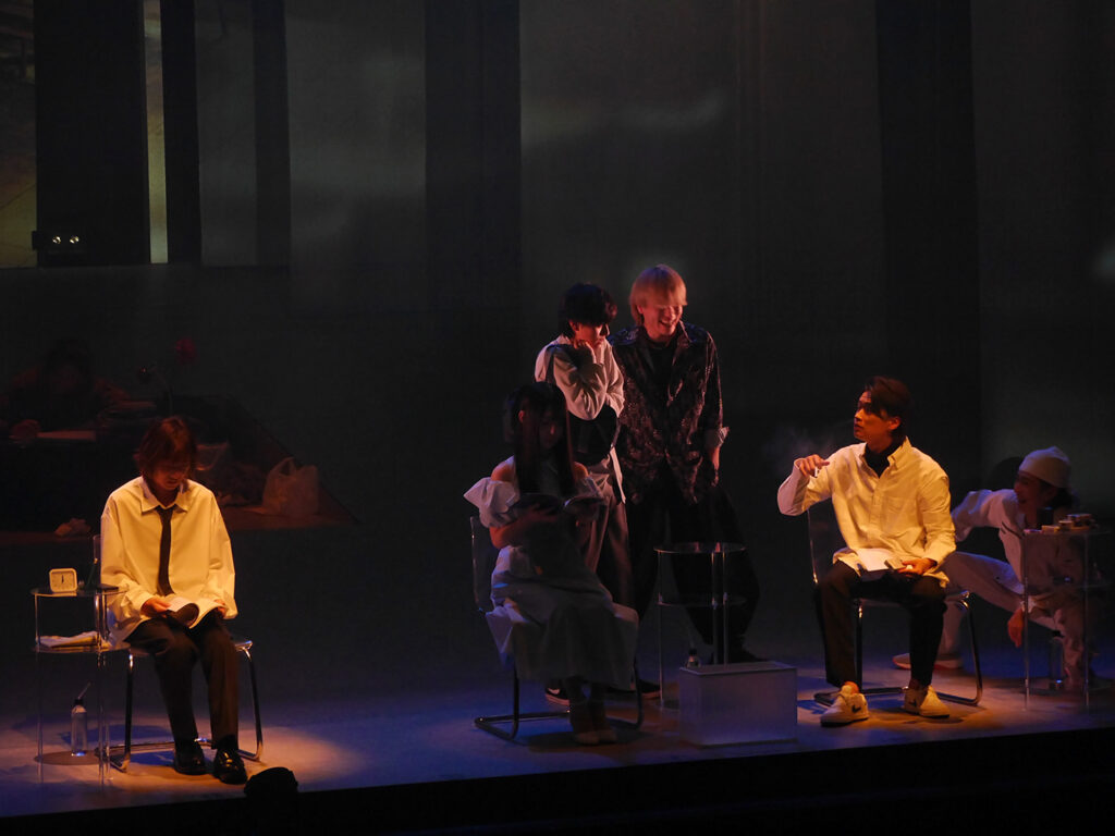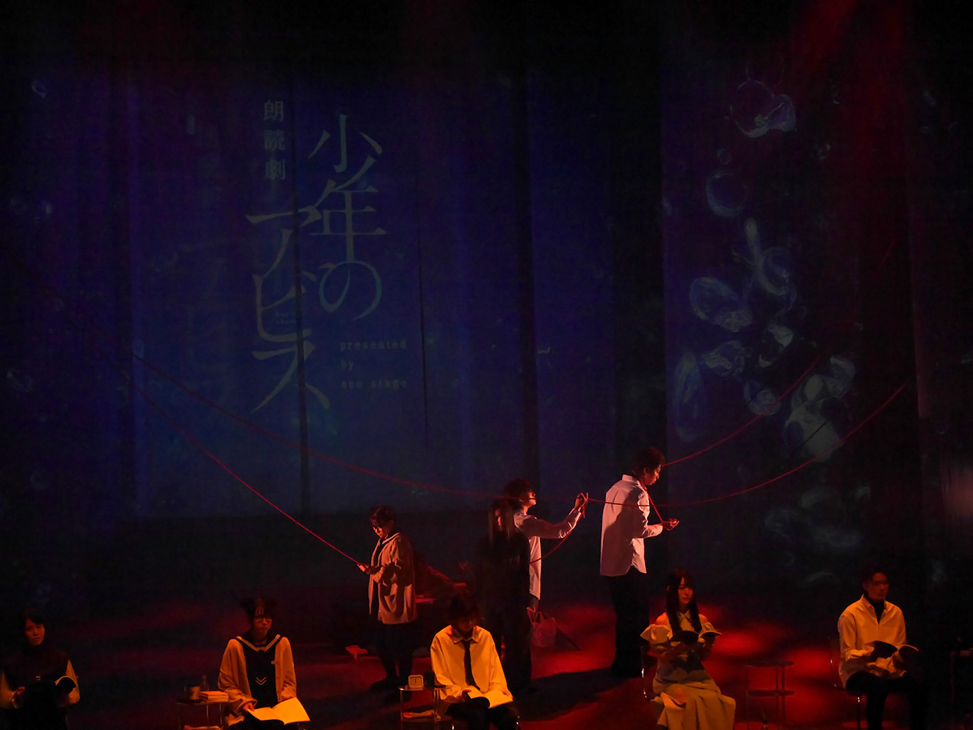 「朗読劇『少年のアビス』presented by eeo Stage」は、“劇読劇”でありながらもメインキャスト陣が声と表情、時にその動きで表現する場面を、その近くでアンサンブルがもう一人の「演者」として同じように動き、また、場面によってはまったく別の役柄としてお芝居をする「演劇」も同時に見ることができるという、ただ朗読を楽しむだけではなく「演劇」も楽しむことができる今までにない公演に。
