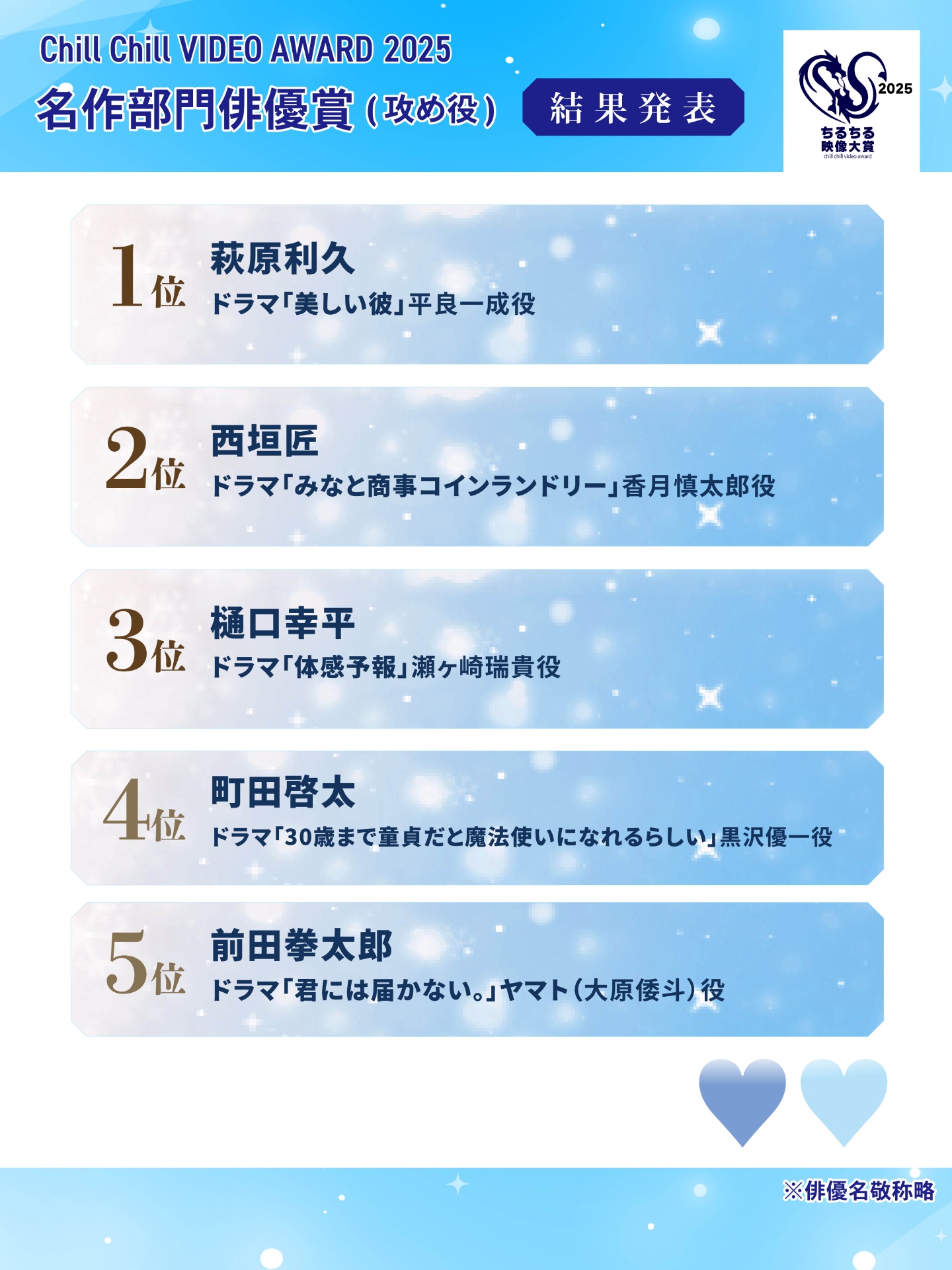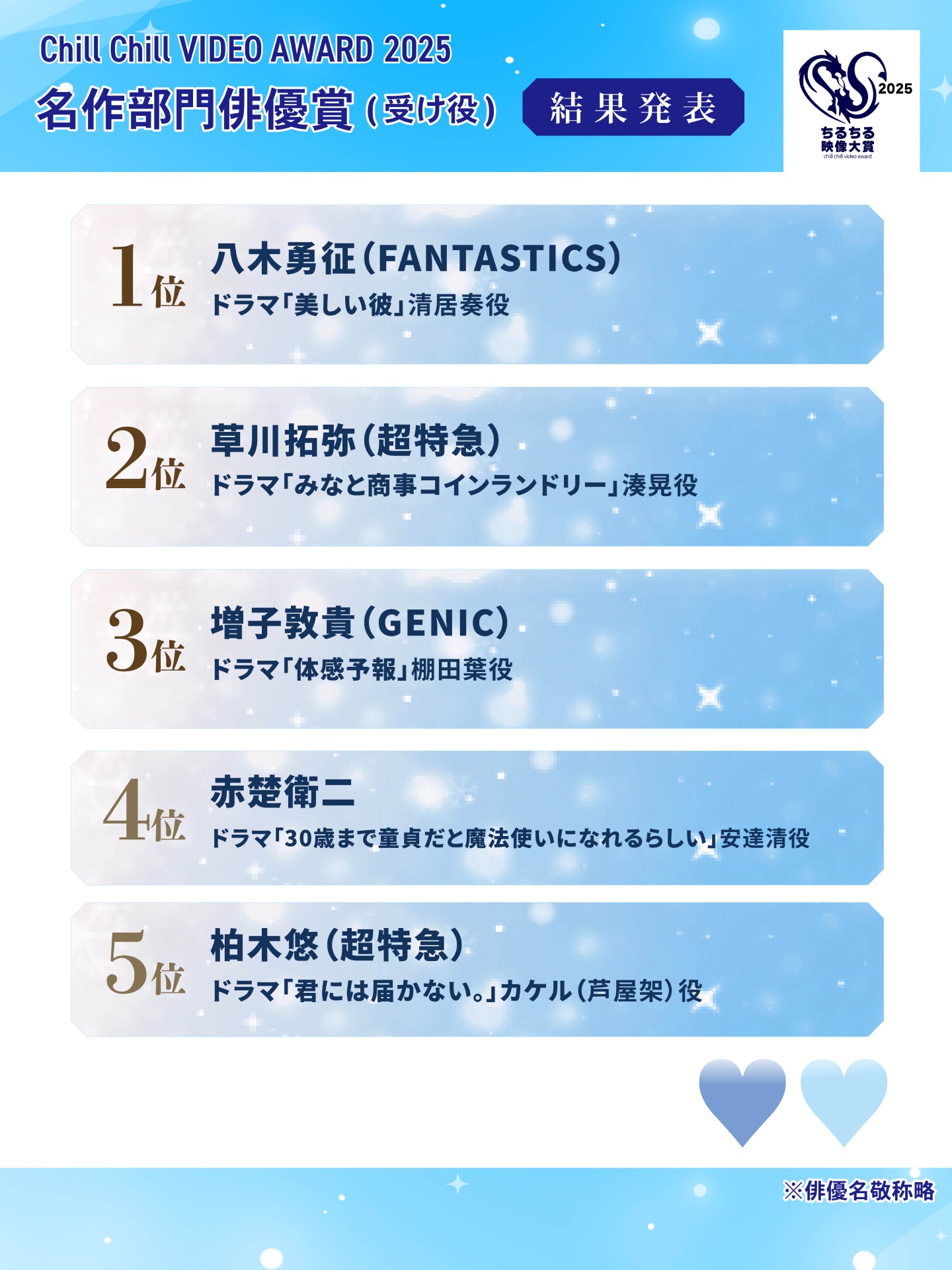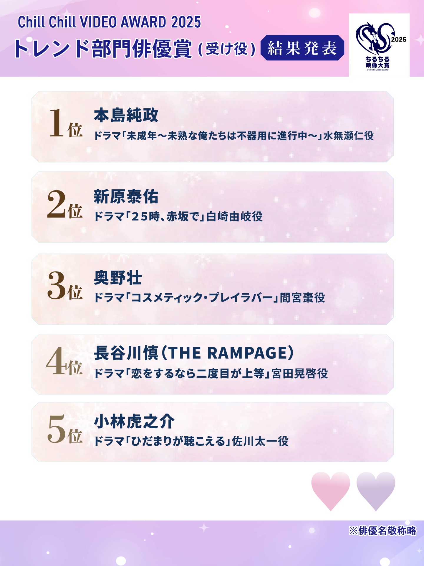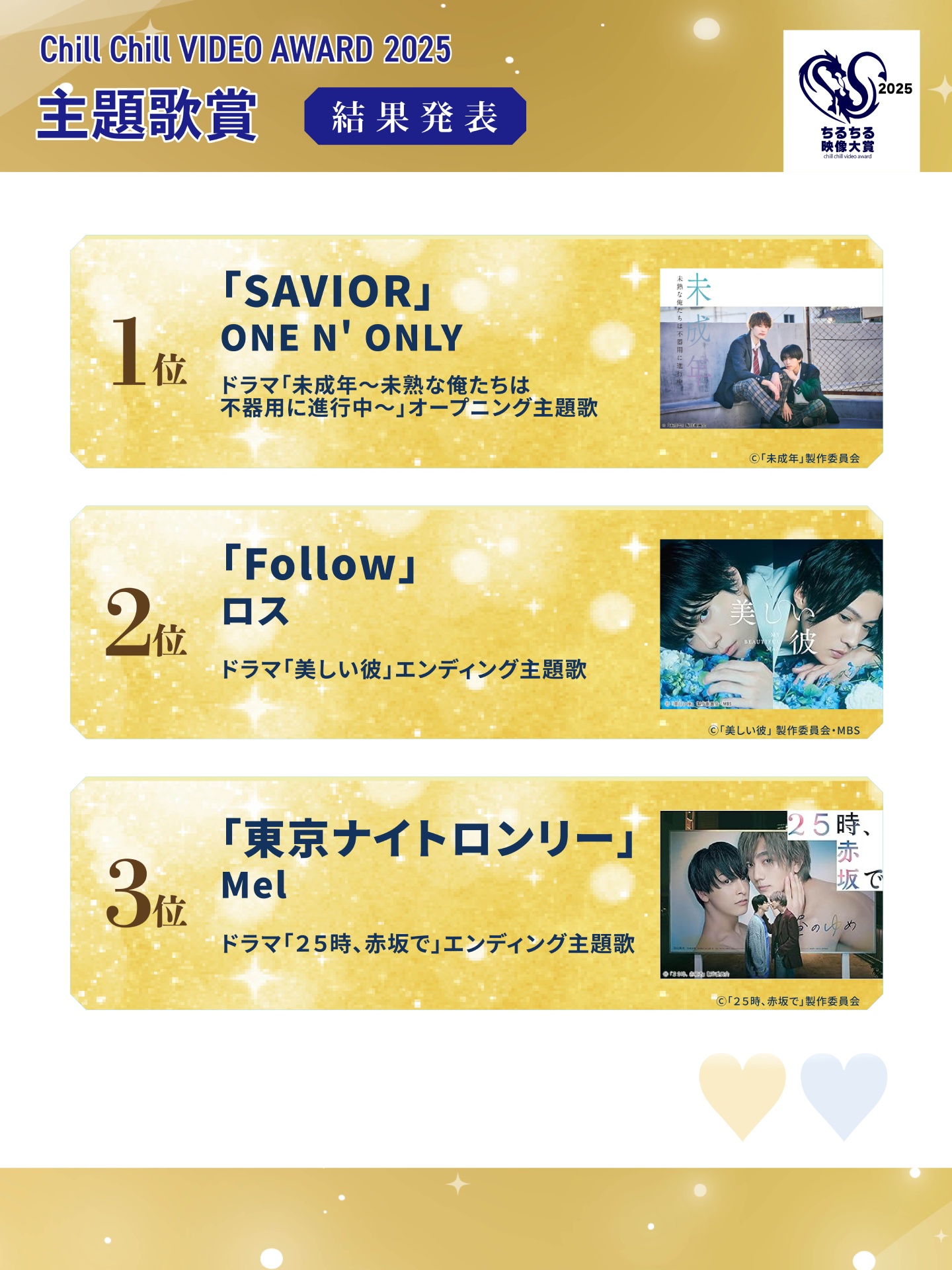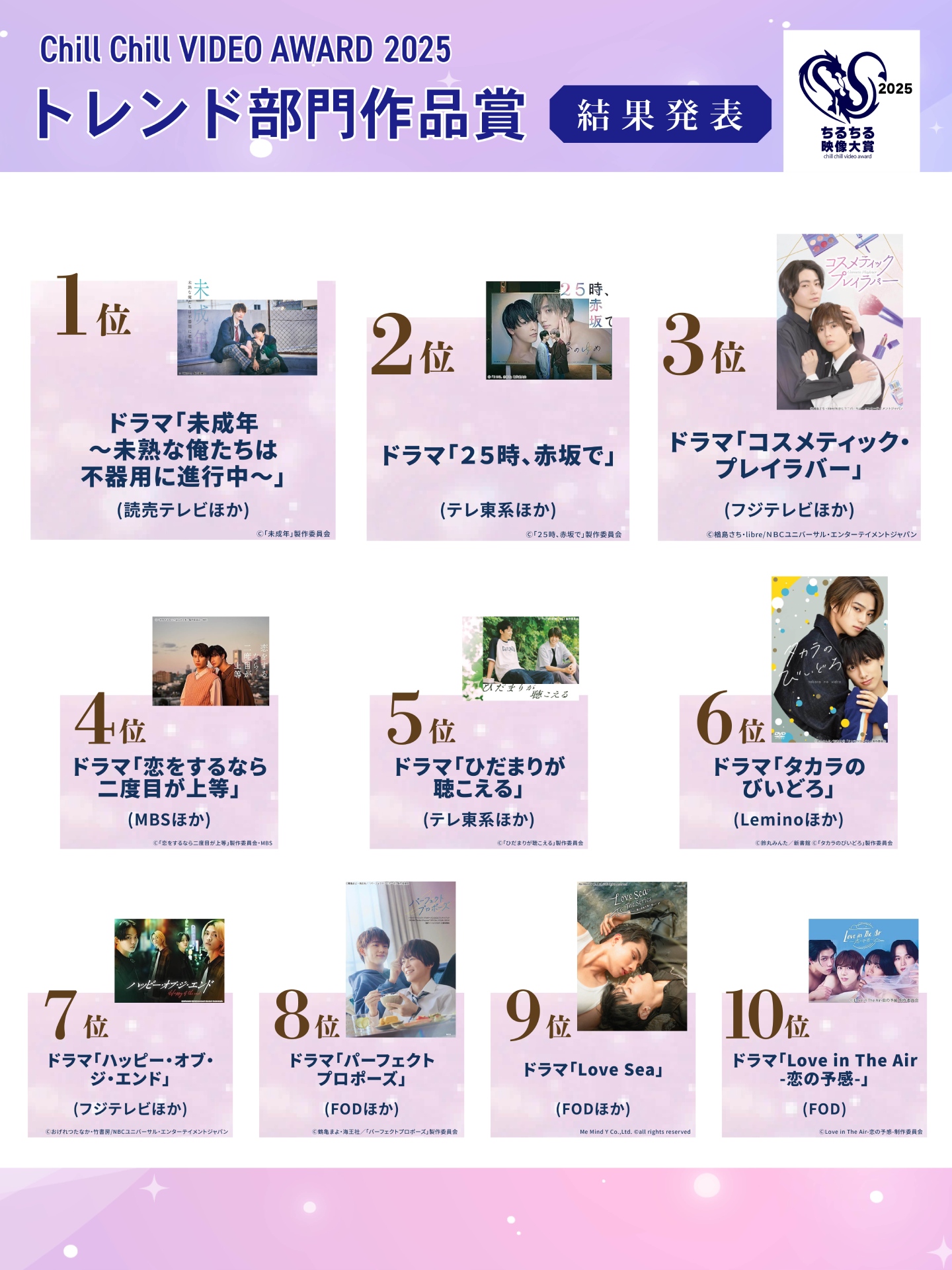 「ちるちる映像大賞2025」受賞作品1位一覧
