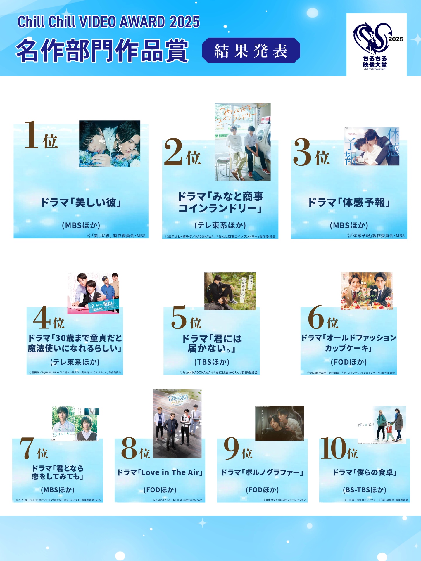 今回の「ちるちる映像大賞2025」では、重厚なストーリーと美しい映像によって2人の関係性を情緒的に描く作品が多くの支持を集める結果となりました。