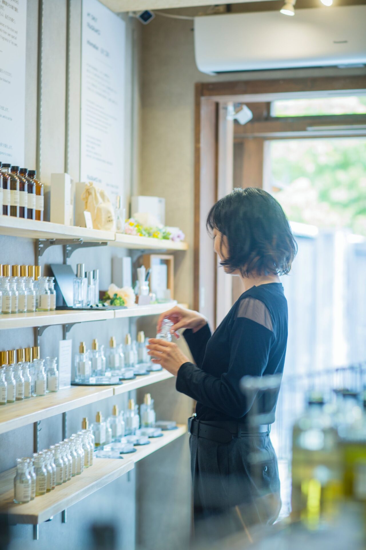 現在、京都に6店舗、名古屋に1店舗、東京に3店舗,、横浜に1店舗の計11店舗を展開しています。店舗では、季節に応じて用意された数十のフレグランスからお客様が好みの香りを選び、経験豊富なフレグランスアドバイザーがお客様のお好みをお伺いしながら、目の前で香りを調合します。香りの組み合わせは1億1043万通り以上。完成したフレグランスは、まさに世界に一つだけの「私らしい、私だけの香り」となります。