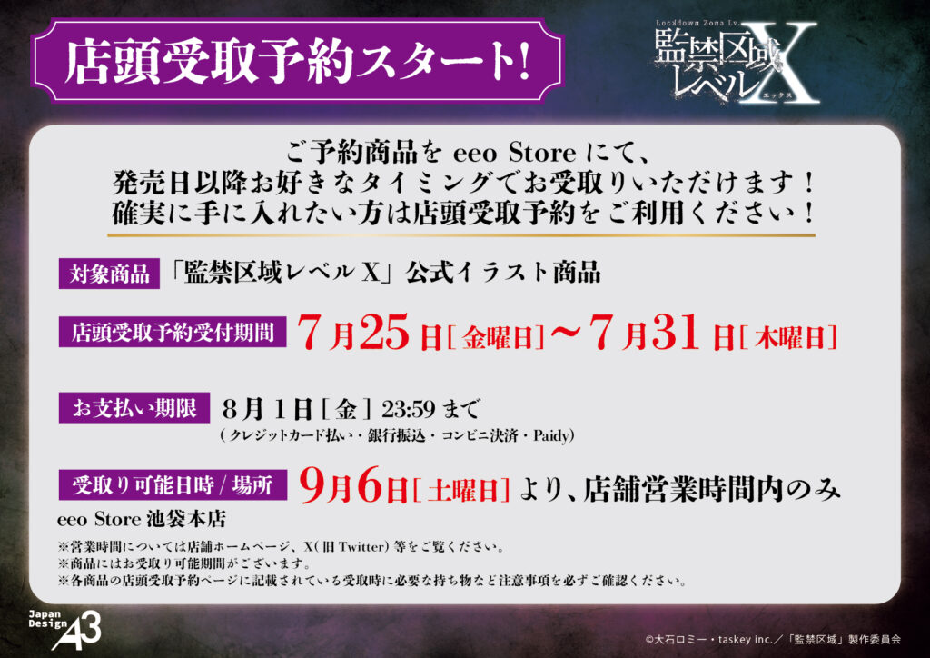 『監禁区域レベルX』のPOP UPが、eeo Store 池袋本店にて開催決定です!