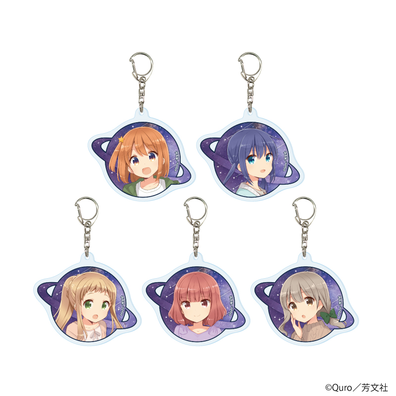 公式イラストを使用した、大きさおよそ6.5cm×6.5cm以内のアクリルキーホルダー。惑星をイメージした形で、キャラクターたちの可愛さも作品らしさもさらにアップ♪