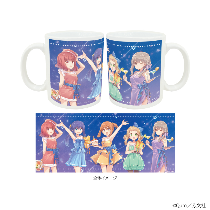 大きさおよそ縦10cm×横8cm、容量約350mlのマグカップ。キャラクターたちが表面をぐるりと取り囲んだデザインで、いつものティータイムがもっと楽しみになること間違いなし♪