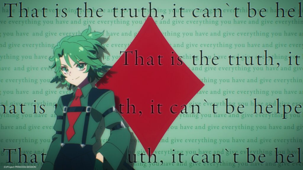 エンディング映像では、チェス盤を模した幻想的な空間の中、バンド・スナッチの4人がまるで運命そのものを操るように佇み、歌い上げる様子が映し出されており、プリンセスたちの前に立ちはだかる“敵”としての存在感をより鮮烈に印象づける一方で、彼ら自身が抱えた使命にも光が当たる映像に。