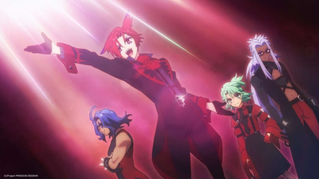 今回解禁されたのは、第12話でカリスト(CV.小林千晃)がプリンセスたちとの戦闘中に歌った「使命は赤きセレナーデ -Ver. First Blood-」が、バンド・スナッチ全員歌唱の完全版になったもの。カリストのボーカルを中心に、新たに加わるギータ(CV.千葉翔也)、ベス(CV.榎木淳弥)、ドラン(CV.武内駿輔)のコーラスや力強いバンドアレンジが魅力の1曲です。
