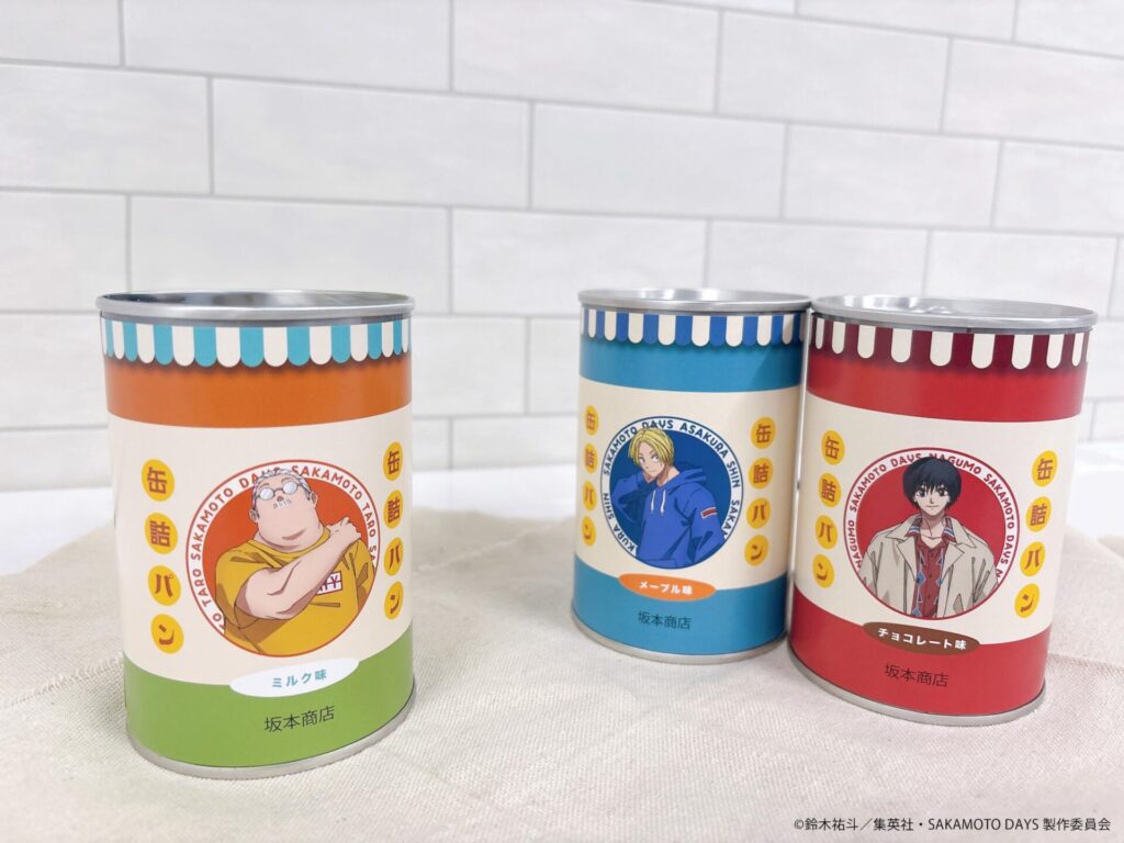 TVアニメ『SAKAMOTO DAYS』の「with you BREAD(缶詰パン)」には、作中に登場する坂本太郎、朝倉シン、南雲がデザインされた全3種がラインナップ!