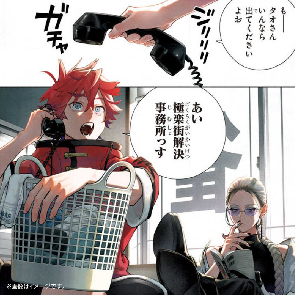 極楽街解決事務所につながる黒電話。電話がつながるとアルマとタオの声が聞こえてくる。