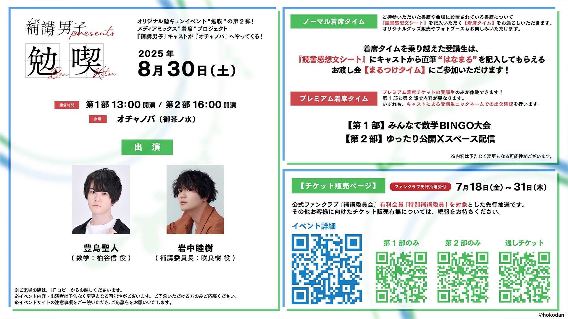 2025年8月30日(土)に、前回開催が好評だったファンイベント「勉喫」の第2回が開催されます。8月1日(金)よりチケットの一般先行発売が開始! 注目のイベント内容となってるので、本記事と合わせて詳細をチェックしてみましょう。