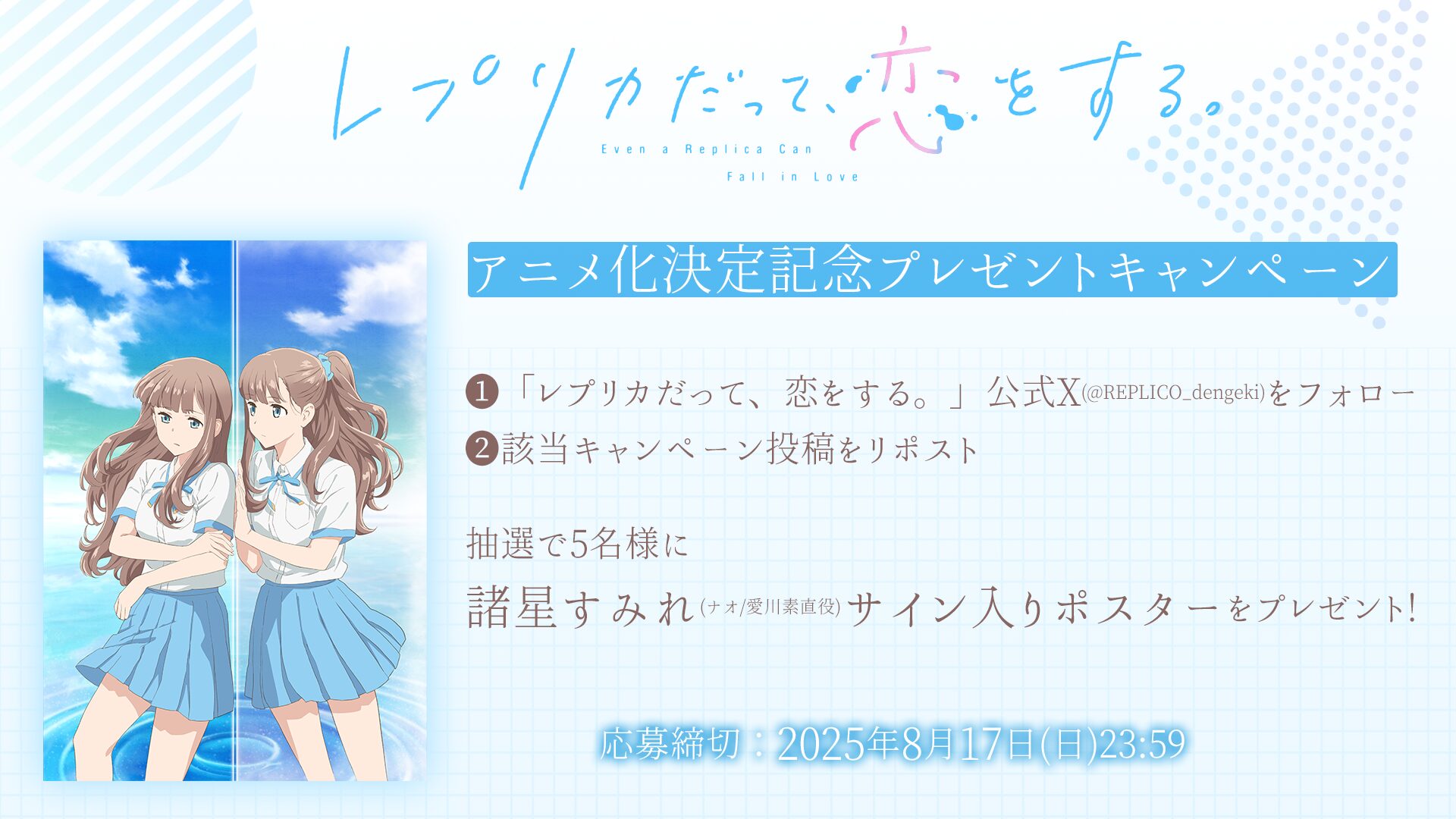 応募方法:『レプリカだって、恋をする。』の公式X(@REPLICO_dengeki)をフォロー&該当キャンペーン投稿をリポスト