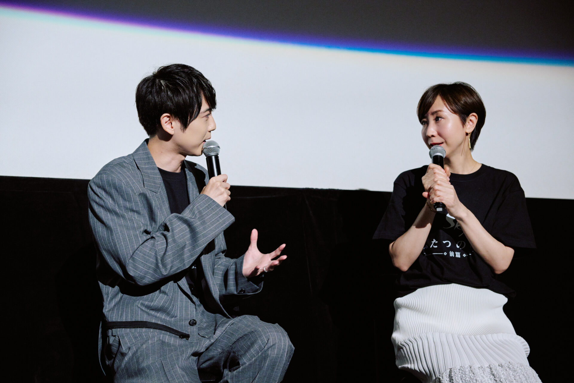 まず、前半のトークセッションには、劇中ナレーションを担当した声優の梶裕貴さん、そしてエンドソングを担当したコトリンゴさんが登壇。『Sky』に対する印象や本作への想いなどをテーマにお話しいただきました。