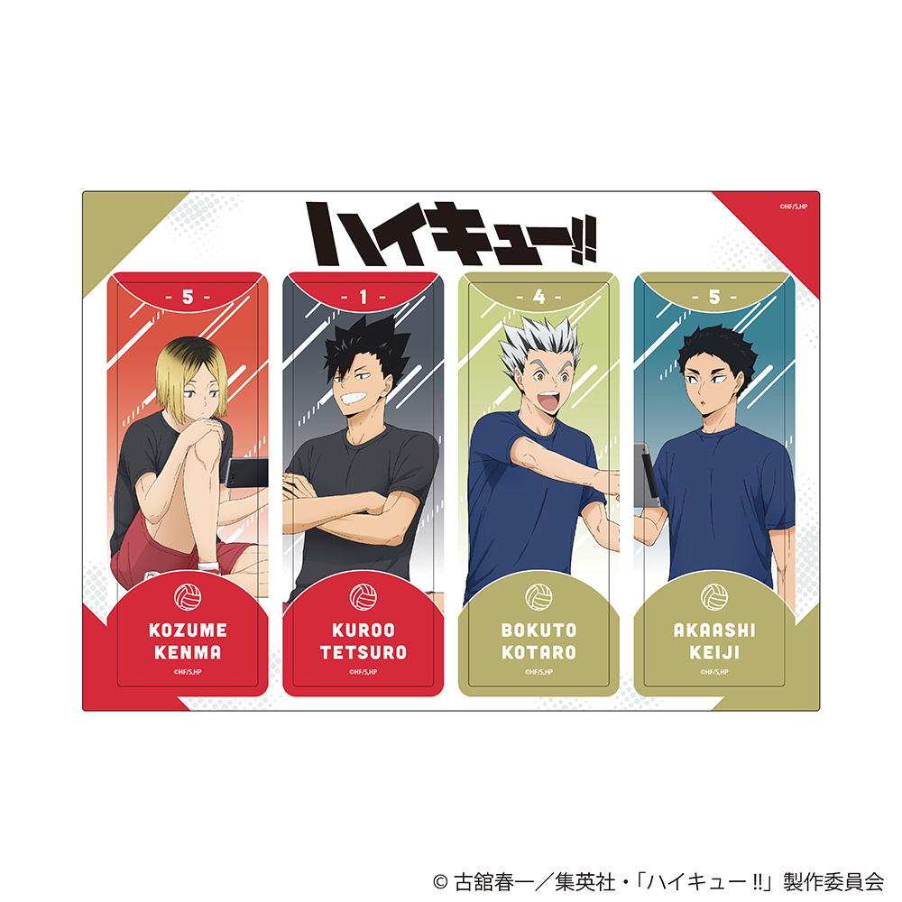 サイズはおよそ9cm×9cm。日向翔陽・影山飛雄、月島 蛍・山口 忠、黒尾鉄朗・孤爪研磨、木兎光太郎・赤葦京治をそれぞれペアでデザインしました!