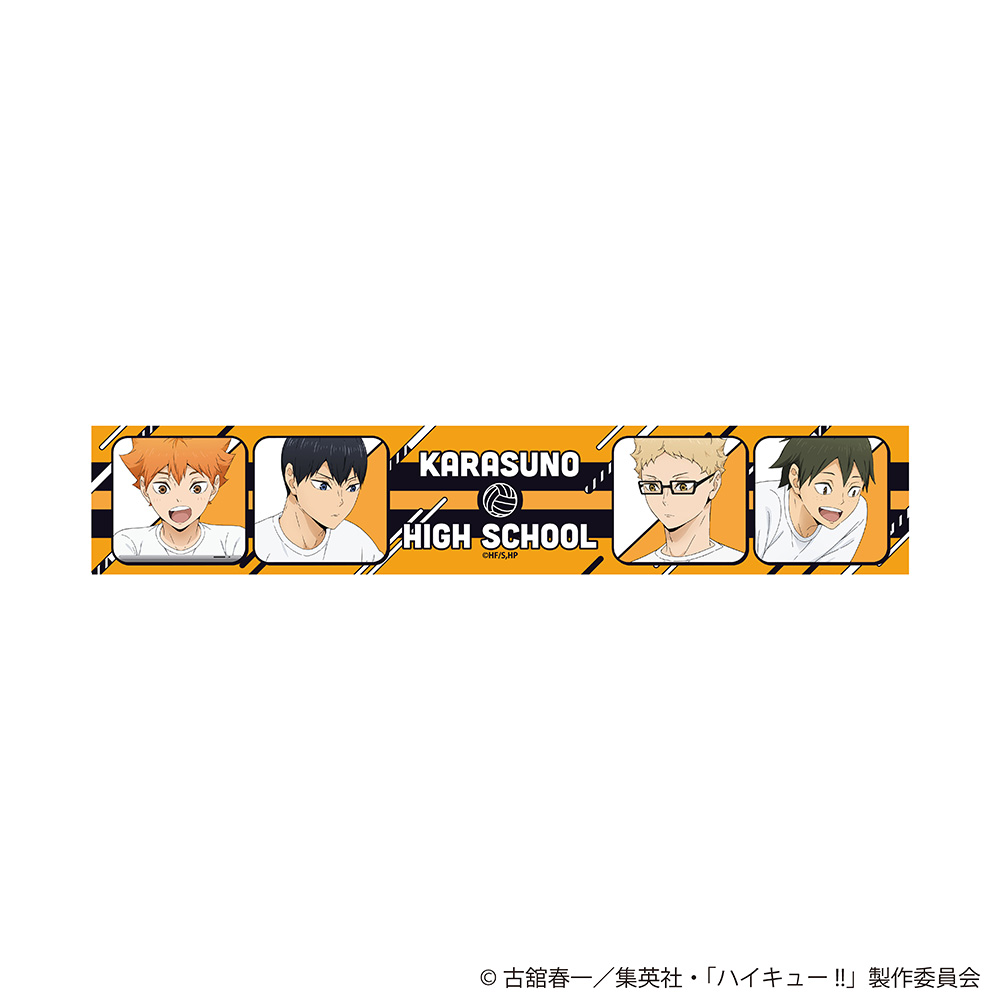 烏野高校、音駒高校、梟谷学園高校の各学校名とキャラクターたちのビジュアルが描かれたハイセンスなマフラータオルも登場!