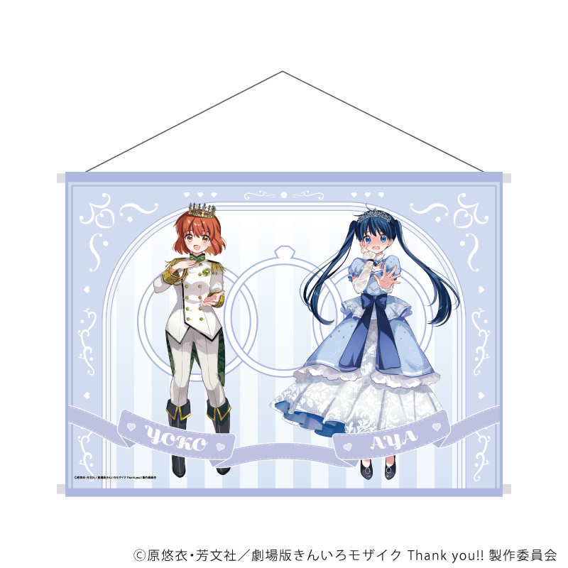 B2横タペストリーは、およそ73cm×52cmと圧巻の大きさ。タペストリーとともに花束や今まで集めた『きんいろモザイク』のグッズを並べて、連載開始15周年&2人の誕生日を盛大にお祝いしましょう!