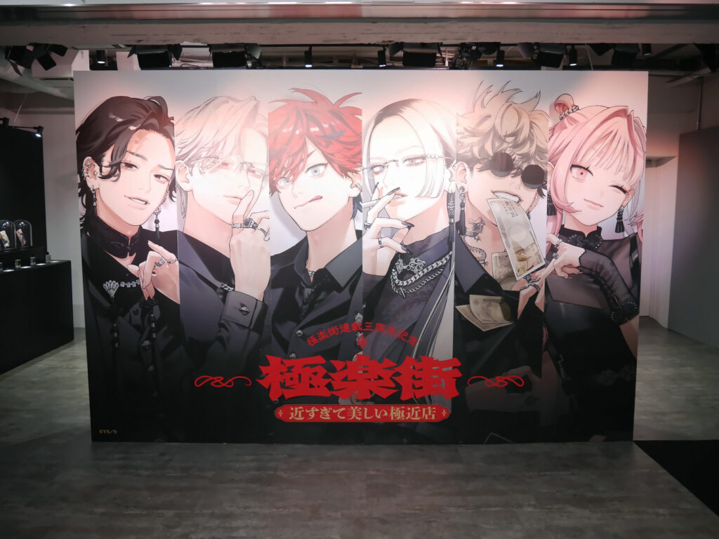 『極楽街』のキャラクターたちの色気と魅惑の姿を、さまざまな形で堪能することができる「極楽街 近すぎて美しい極近店」。ただ眺めるだけではなく、いろいろな体験を通じて、十二分に『極楽街』を体感できる魅力的なポップアップショップでした!