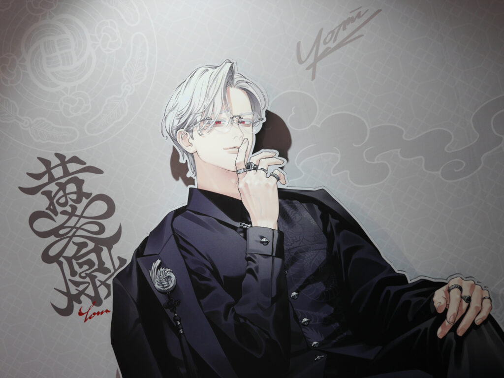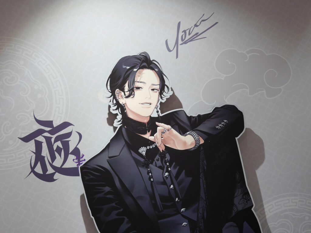 キャラクターたちの描き下ろしイラストがダイカットパネルになった「極近共同撮影フォトパネル」は、遠くからでも“極近”でもお好きな距離で撮影することが可能! 色気たっぷりのキャラクターたちの隣に並んで撮影してもよし、崇めてもよし、同じポーズをとってもよし、推しと2ショットを撮ることができます。キャラクターの間に挟まれば3ショットも!!