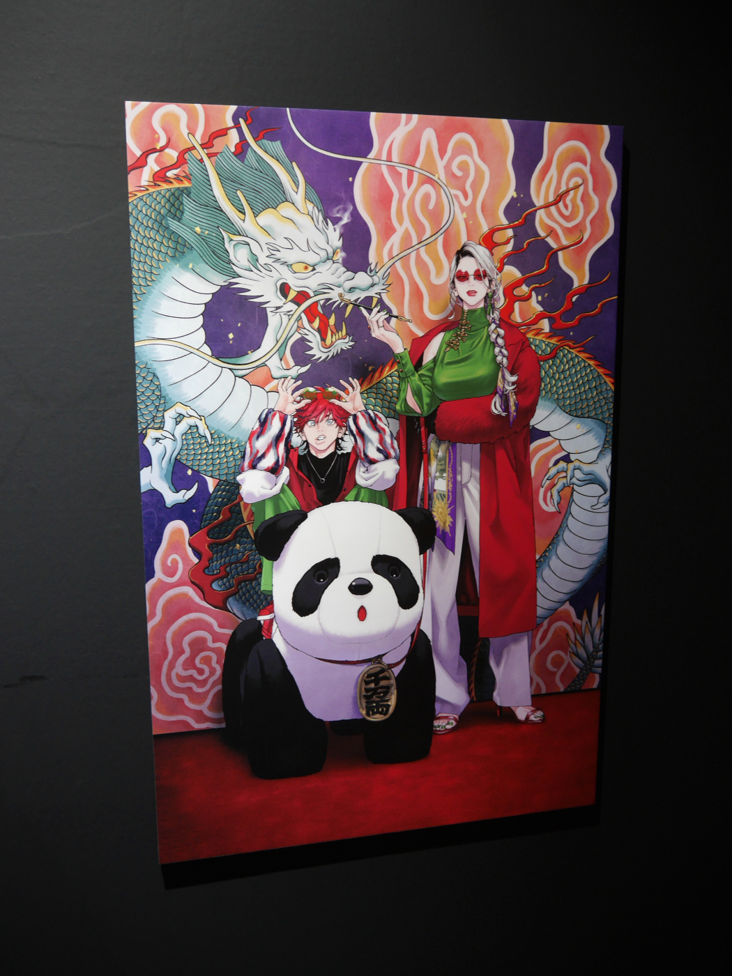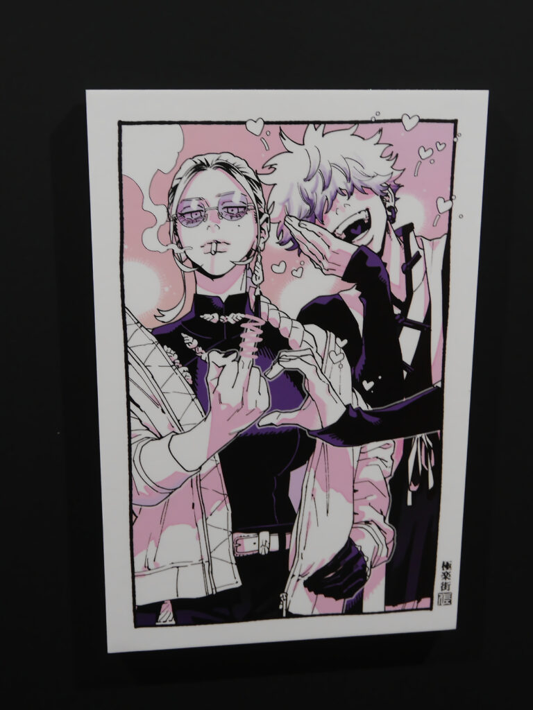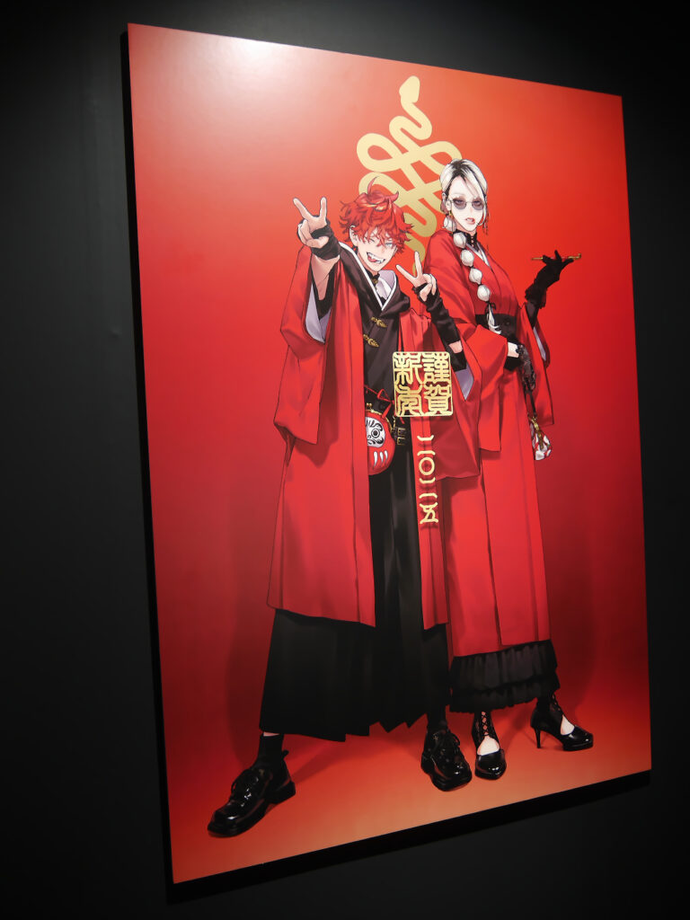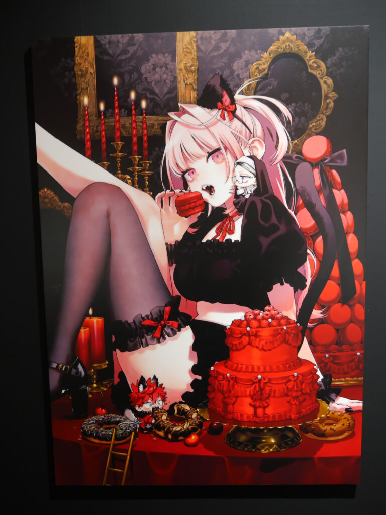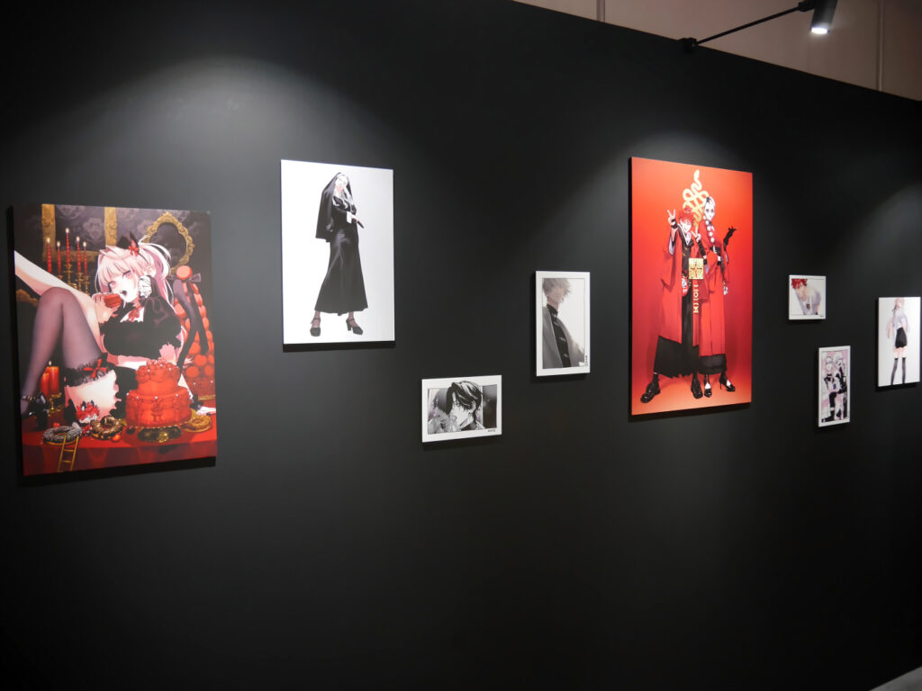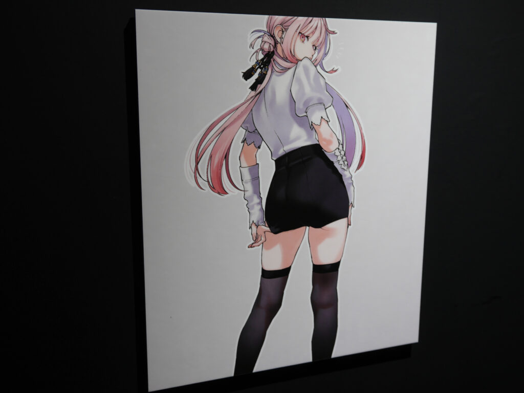 ポップアップショップに着いてまず向かったのは、地下にある体験エリア。暗闇に向かって足を進めると、佐乃夕斗先生のカラーイラストや漫画の一場面が大きなパネルとして飾られた入口に到着! 漫画を読んでいても美しい……と感じたイラストを、より大きなサイズでじっくりと見ることができます。