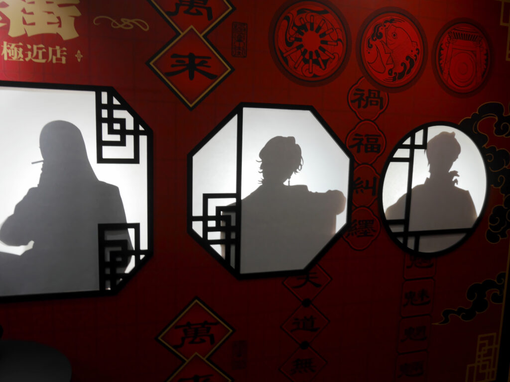 また、撮影用に小物も用意されているので、アルマに餃子を食べさせてあげたり、タオにライターを差し出したり、辰臣に札束を渡したり……ぜひ推しのキャラクターたちと記念写真を撮影しましょう!