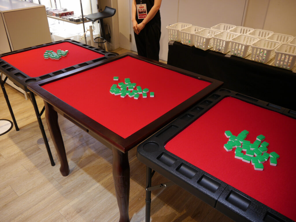 また、トレーディング麻雀牌風キーホルダーは、レジにて本グッズの購入券を買い、レジ横の「極楽麻雀ツモ体験」をすることで、ゲットできます。麻雀卓に散りばめられた麻雀牌のなかから、ツモった(麻雀牌を1つ選ぶこと)麻雀牌のキーホルダーがお手元に!