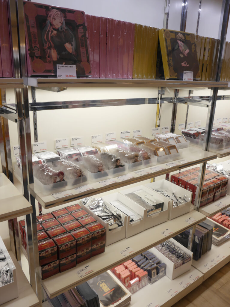 体験エリアを抜けてやってきたのは、物販コーナー! 描き下ろしイラストが使用されたさまざまなグッズが販売されていました。サンプルも展示されており、お部屋でのグッズの飾り方の参考にも!