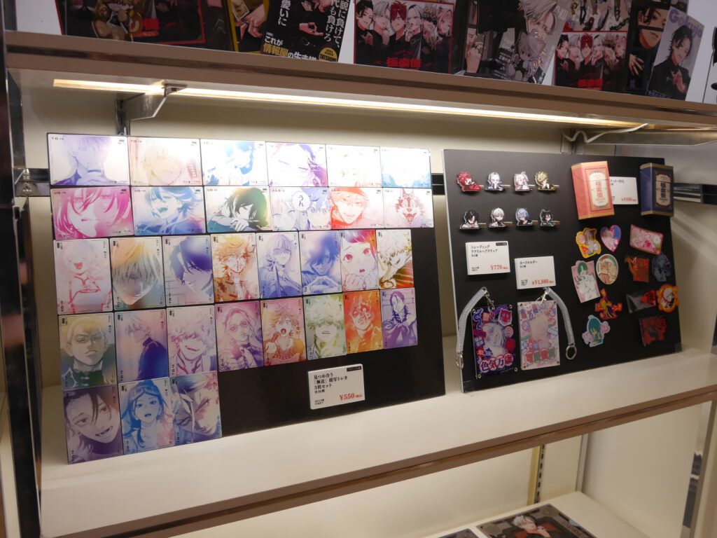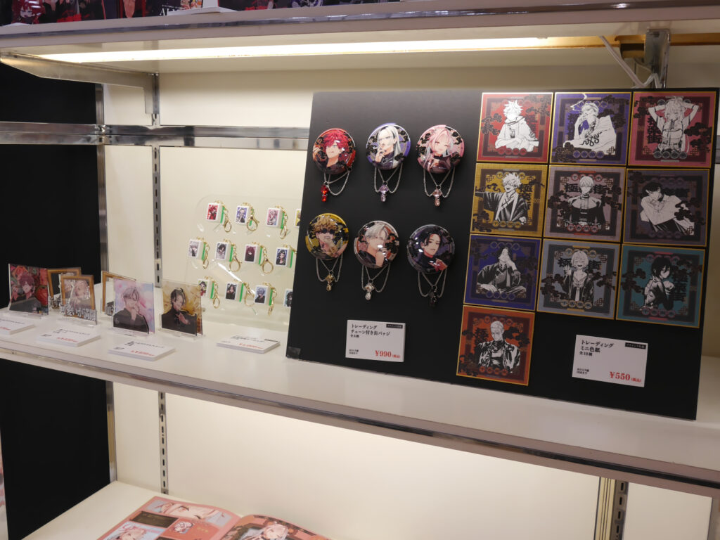トレーディングチェーン付き缶バッジや見つめ合う「極近」接写トレカ、選べるアクリルスタンドなどのほか、アクリルスタンド&角缶バッジ&アクリルキーホルダー&トレーディングカード&ポストカード&シールがセットになったキャラクターごとのスペシャルボックスセットも!!