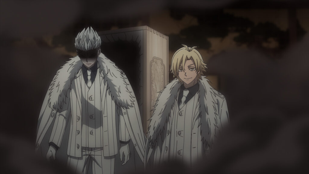 四季と対峙した唾切は本気を出すと宣言。“棺桶”を開くと、中から桃太郎が現れる。仲間すら人形にするのかと怒りを露わにする四季に対し、唾切はこの死体が自ら望んで人形になったと明かす。その人形となった桃太郎の力で重力を操り、唾切は四季を追い詰めていく。一方、京都支部に戻ってきた無陀野は、蓬の能力で塞がれた入口を前に対応を考えていた。無陀野の力で無理やり破壊すると、地盤が崩れて地上にいる人々が巻き込まれてしまう。そこに生徒の遊摺部従児と帆稀が合流。帆稀の力を使って地震を装い、周囲の人々を避難させることに。時を同じくして、皇后崎と蓬の戦闘も繰り広げられていた。皇后崎は蓬の戦術に押され、箱の中へ閉じ込められてしまう。