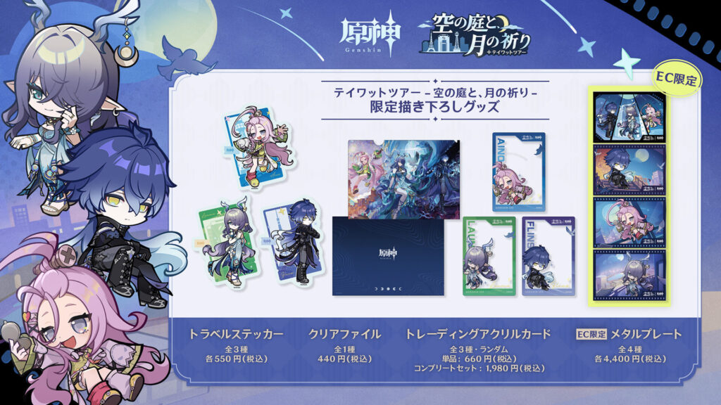 新キャラクターである「アイノ」「フリンズ」「ラウマ」の当イベント限定の描き下ろしグッズの販売を予定しております。また、『原神』公式のナド・クライグッズや、フランス・パリで2025年9月13日より開催予定の「Genshin Impact Teyvat Expo」で発売予定のグッズの同時販売も予定しております。