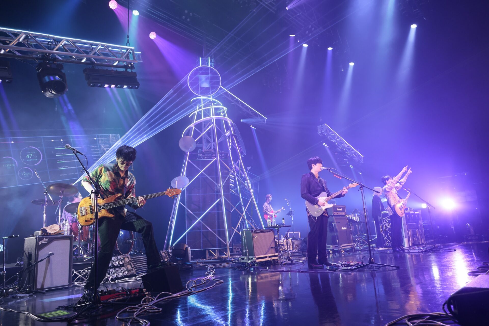 続いてのMCパートでは、前回3月のライブを振り返りつつ、改めて今回のライブへの意気込みを語り、この後は「長くてぶち上がる」ブロックになると予告。中島が「腕上げられますか? 盛り上がっていこうぜ!」と煽り、赤い照明に包まれる中、「Dawn」で次のブロックに突入すると、早速、手を掲げて自由に楽しむファンの姿が見られる。続いては、ピアノの音色が印象的で疾走感溢れる1st Albumのタイトル曲「Ray」。後半のシンガロングで更なる一体感を生み出すと、間髪入れずにキャッチーなギターイントロから「to start over」へ。さらに、4つ打ちのリズムに乗せたサビのコール&レスポンスのレクチャーを経て人気曲「御免あそばせ」へと繋いでいく。ファンとの結束が一気に強まったところで、渡辺が「最高だぜ! ありがとう!」と叫ぶと、軽快で爽やかなバンドサウンドが魅力の「らしくないかもな」をパフォーマンス。「君と出会えたこの日に ありがとう、なんてさ」という歌詞が印象的に鳴り響き、多幸感溢れるブロックを締め括った。ぶち上がるブロックとの予告通り、この日最大のハイライトとも言えるようなエモーショナルなブロックとなったのだが…、ライブはこの後さらにぶち上がる展開に。