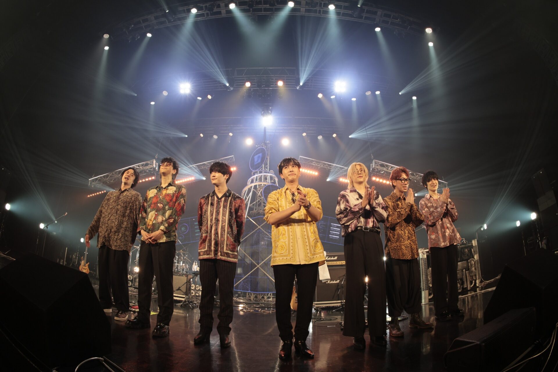 次のMCでは今回の衣装のコンセプトを説明。『東京リベンジャーズ』からのインスパイアであることに触れ、舞台『東京リベンジャーズ』にSir Vanityとして5曲の主題歌で関われたことへの感謝や敬意を伝えると、ライブのクライマックスに向けて、その主題歌を披露していくことを宣言。最後のブロックでは、「RiR」、「Timeless」、「HERO」という舞台『東京リベンジャーズ』の主題歌3曲を立て続けに披露して、会場をさらにぶち上げていった。東リベの世界観を表現したような情熱的な赤い照明で始まり、物語と楽曲が描く静と動、登場人物の感情の揺らぎや爆発する思いをサウンドと照明でも表現した形だ。そんなパッション漲るバンドサウンドと照明演出の融合はZeppというライブハウスならでは。このブロックは、Sir Vanity×『東京リベンジャーズ』が作り出す世界観に誰もが没入できるパートとなっていただけではなく、今回のライブ“TO”のコンセプトを最も体現したパートにもなっていた。