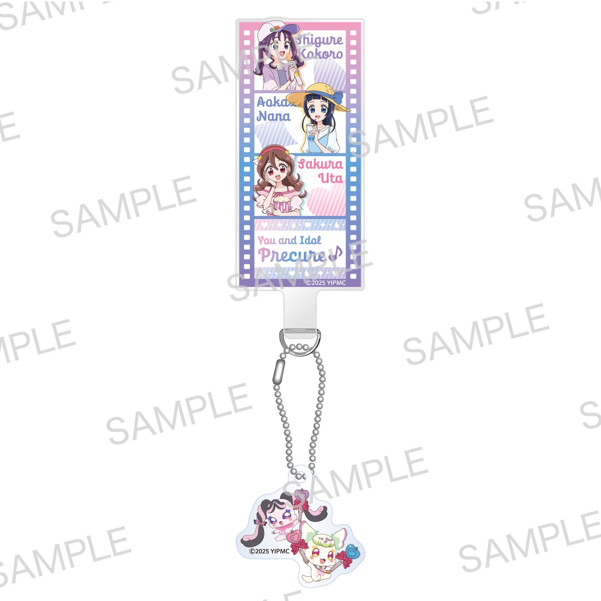 今回発売するのは、キラッキラな、オーロラアクリルスタンド(全4種)、再生画面風アクリルキーホルダー(全2種)、ラメ缶バッジ(ランダム全5種)、アクリル色紙(全5種)、アクリルチャーム付きフォンタブ、ハンドタオル、巾着、クリアファイル(全2種)の計8アイテム。