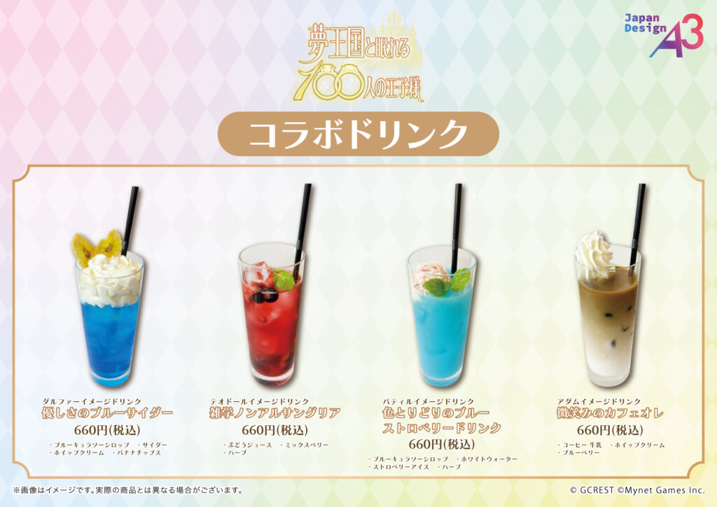 2025年9月9日(火)~21日(日)までeeo Cafeにて開催される『夢100』コラボカフェでは、キャラクターをイメージしたドリンク&フードが多数登場します。