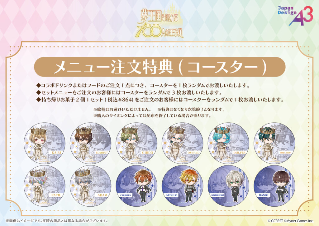 ■コラボドリンクまたはフードのご注文1点につき、コースターを1枚ランダムで配布