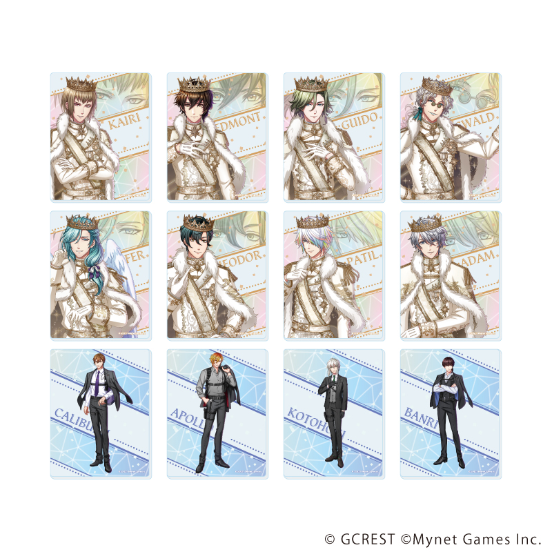 「10周年Ver.王子様」のカイリ、エドモント、グウィード、オズワルド、ダルファー、テオドール、パティル、アダムに加え、 アプリ内イベント「フェイクカップル~任務の後に恋をして~」のカリバーン、アポロ、言祝、万里が勢ぞろい! 新作グッズは8アイテム69種、ご用意しています。