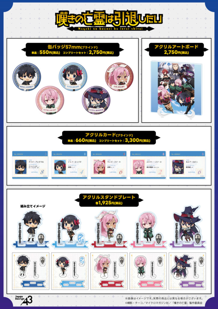 TVアニメ『嘆きの亡霊は引退したい』公式ミニキャライラストを使用した新商品が発売決定です。