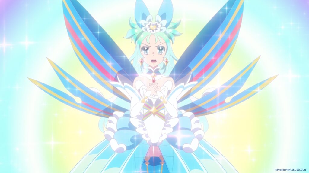 立ち直ったみなもたちは再びアリスピアにて、バンド・スナッチとの決戦に臨みます。変身し、一度は負けたバンド・スナッチ相手に奮闘するプリンセスたち。しかしやはり力の差は埋めがたいものがありました。それでも諦めない三人の耳に、小さな歌が届きます。