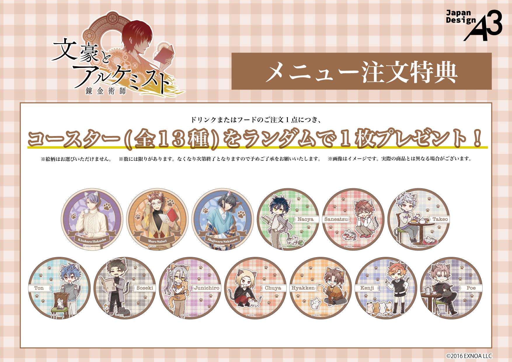『文豪とアルケミスト』のコラボカフェが開催! eeo Cafeで10月21日(火)からスタートすることが決定しました。